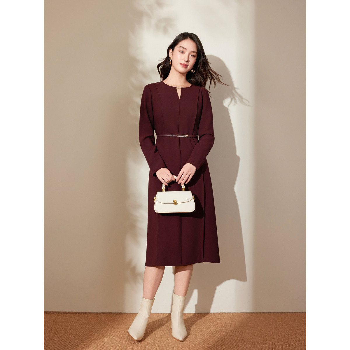 【简约大气】BBLLUUEE/粉蓝衣橱2025秋冬新款雅致通勤收腰连衣裙