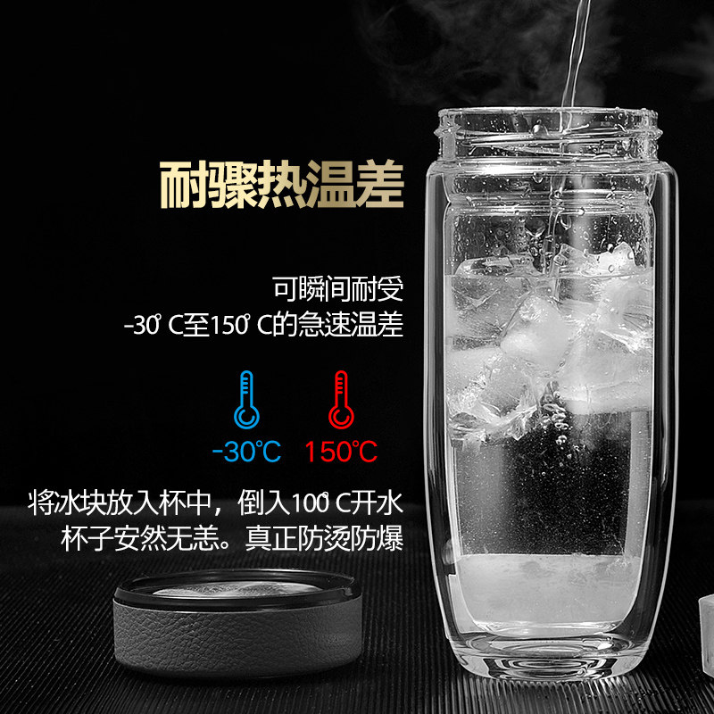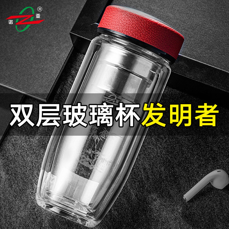 诺亚口杯双层鹅蛋玻璃杯男士高档商务便携水晶透明加厚隔热泡茶杯