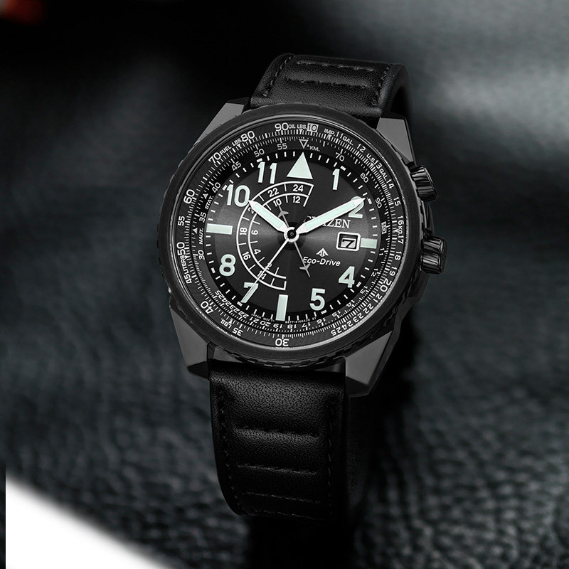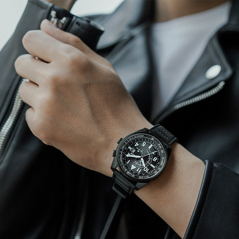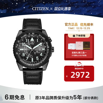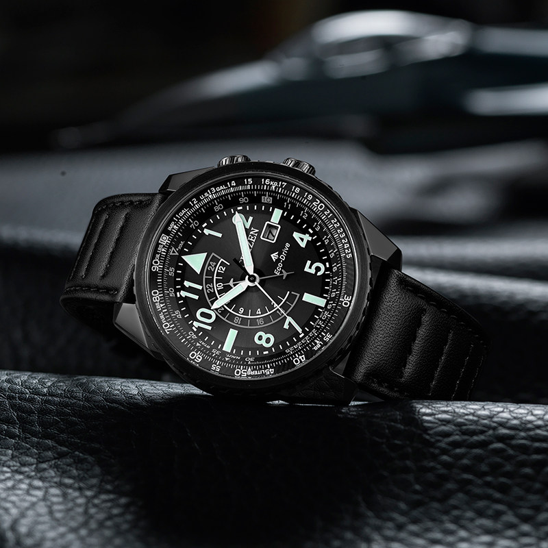 西铁城小牛皮带夜光深度防水日期显示光动能运动手表男BJ7135