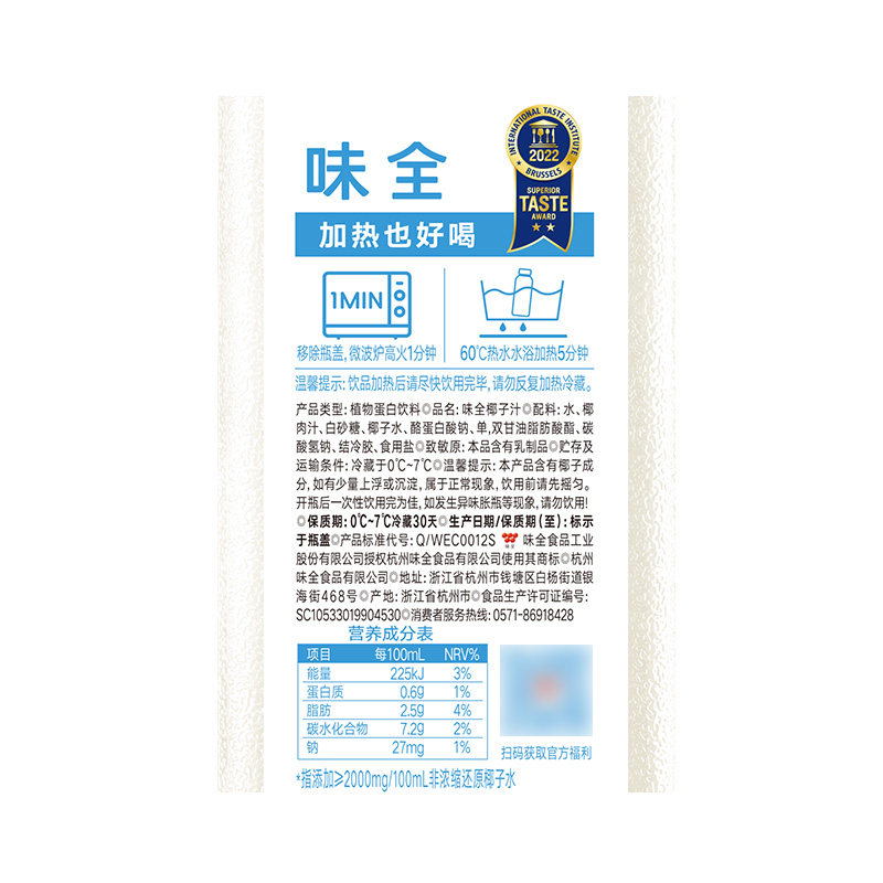 味全好喝椰汁椰子汁植物蛋白饮料900ml×6瓶家庭装果汁低温果蔬汁