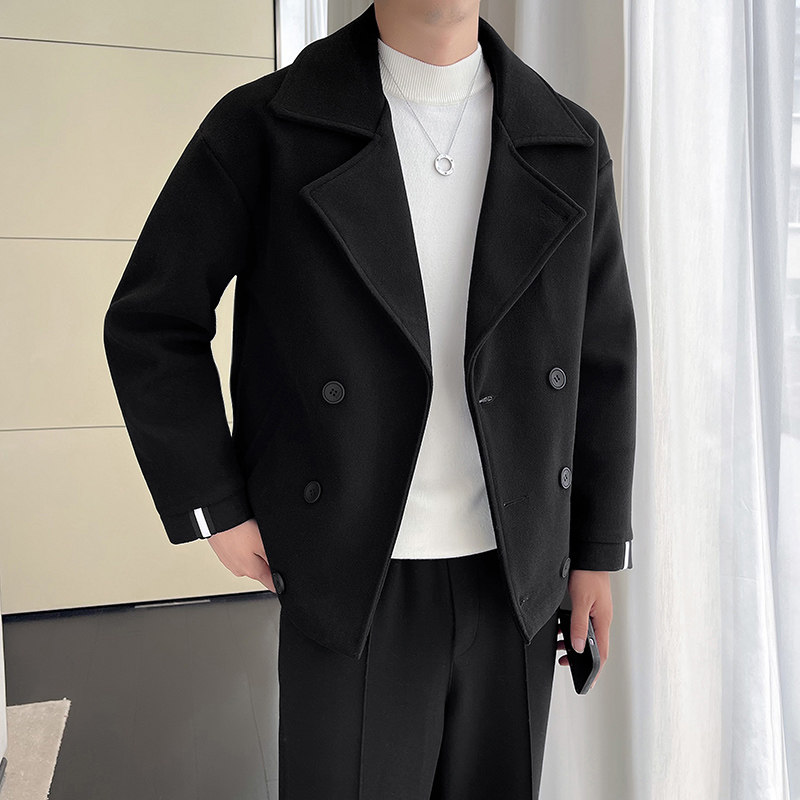 毛呢西装男外套短款冬季加厚呢子大衣2024新款双排扣高级感小风衣
