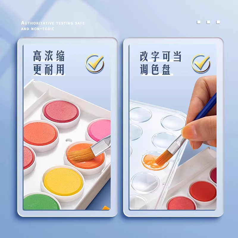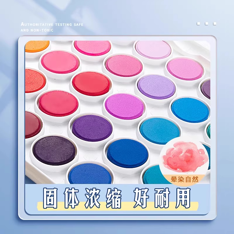 得力美术专用固体水彩颜料套装塑料盒不透明水彩全套工具36色48儿童美术生专用涂色绘画水粉颜料可水洗