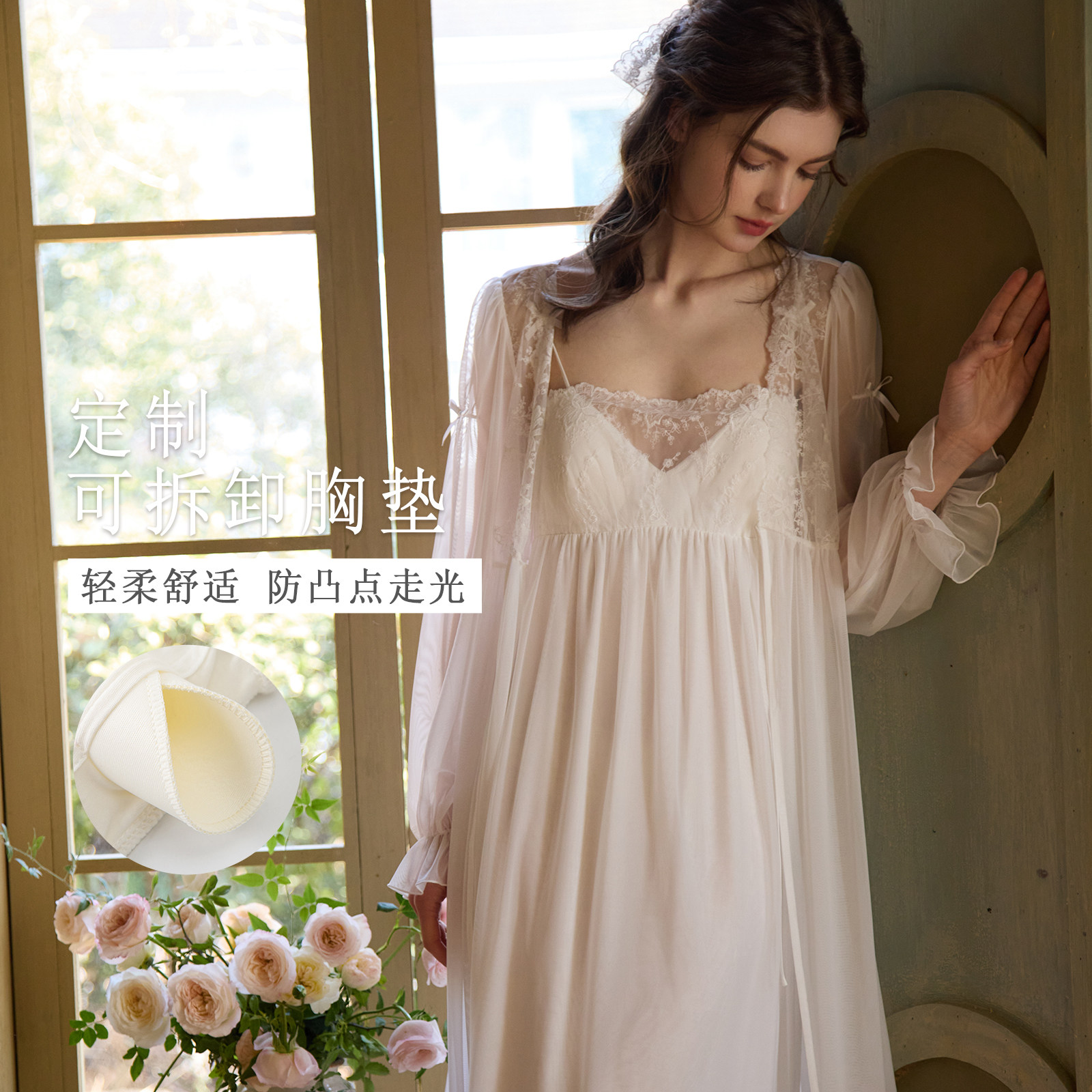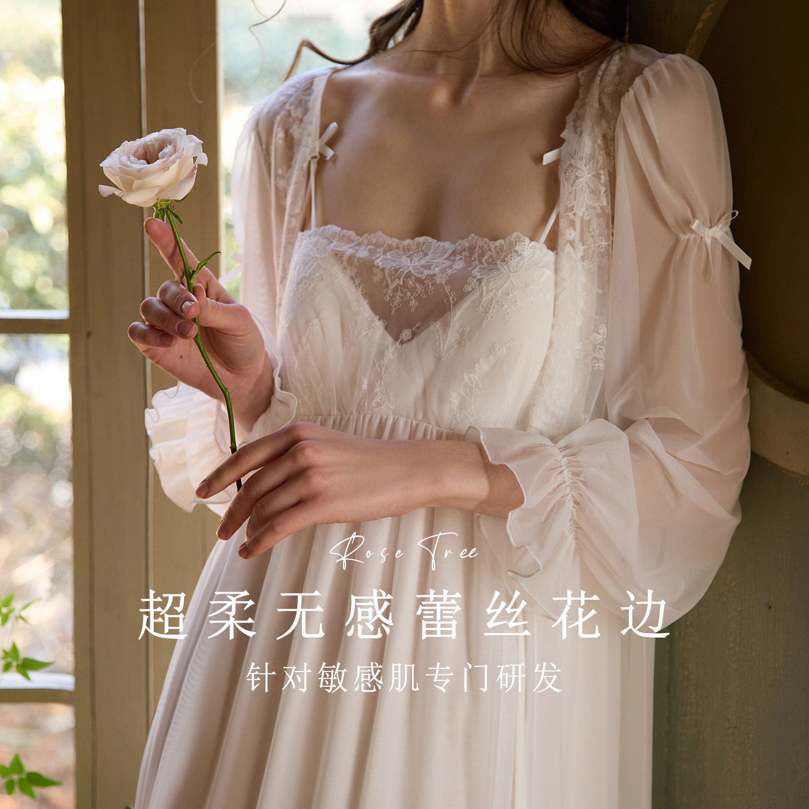 RoseTree新娘晨袍女士春秋季蕾丝吊带性感睡裙睡袍两件套法式睡衣