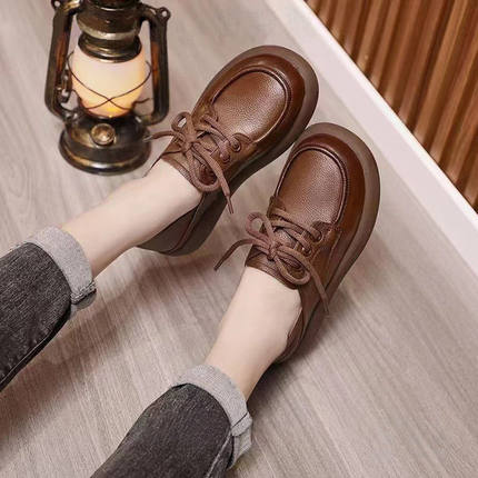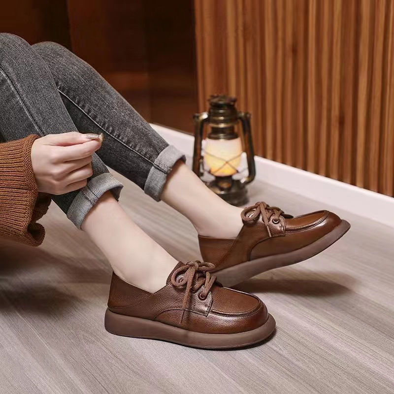 春季真皮软底软面小皮鞋女英伦风单鞋外穿百搭时尚平底舒适工作鞋
