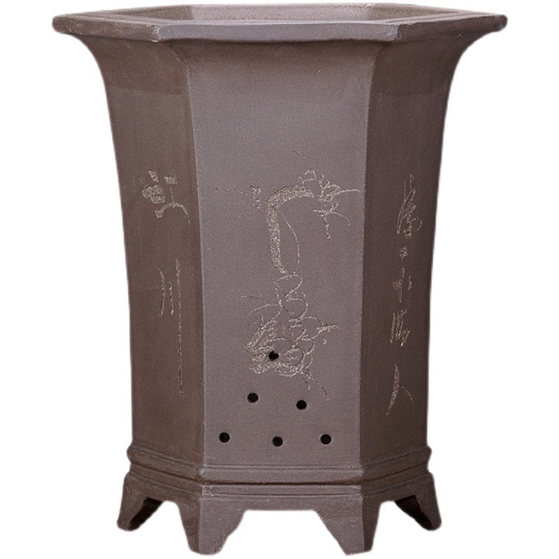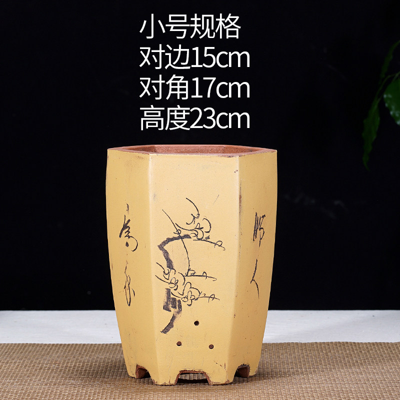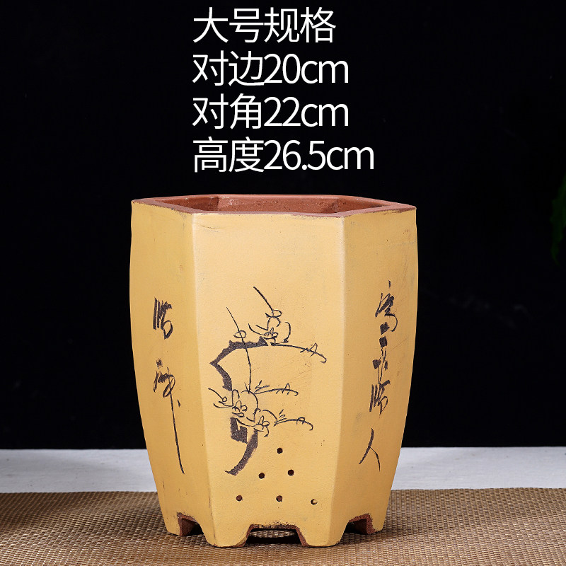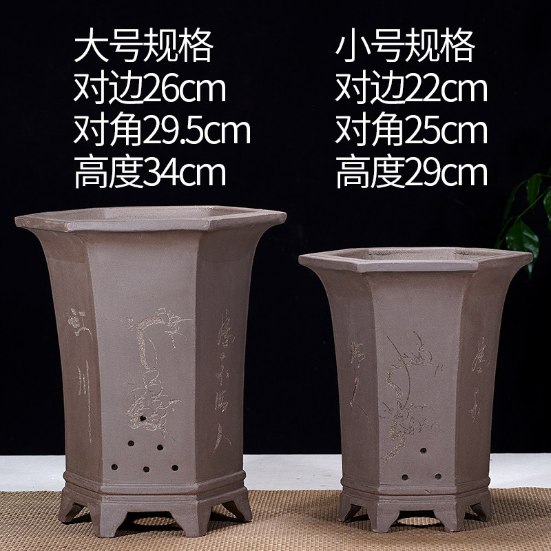 宜兴紫砂盆六方兰花盆花卉绿植物盆栽大号六角透气手工花盆盆栽盆