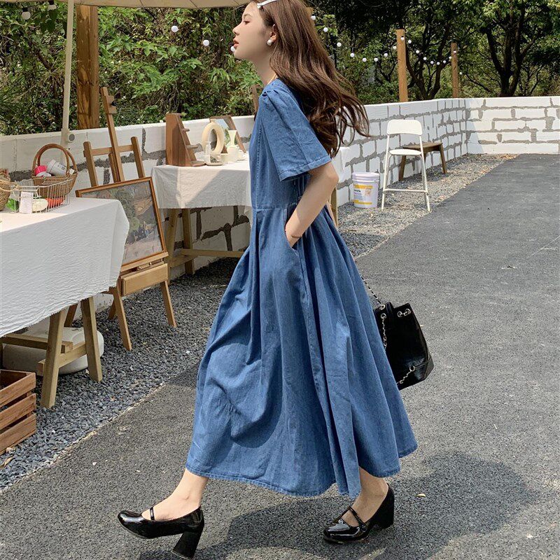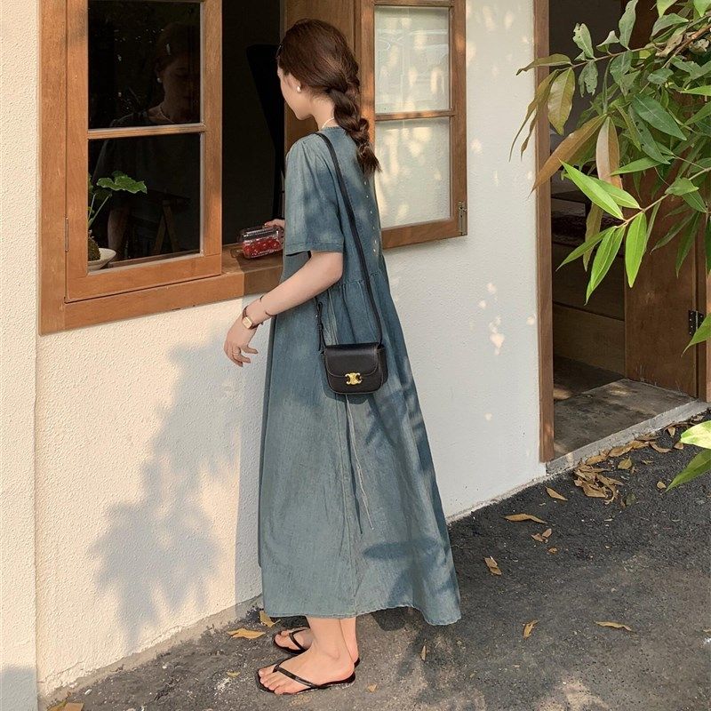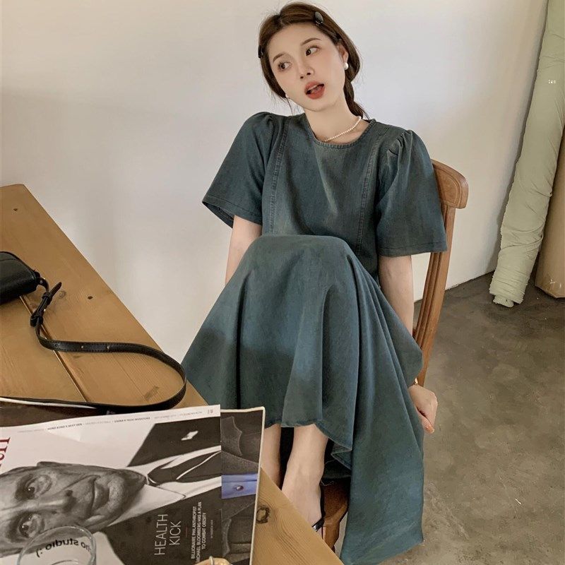 哺乳期夏装时尚辣妈款外出喂奶衣大码女韩版显瘦牛仔连衣裙中长款