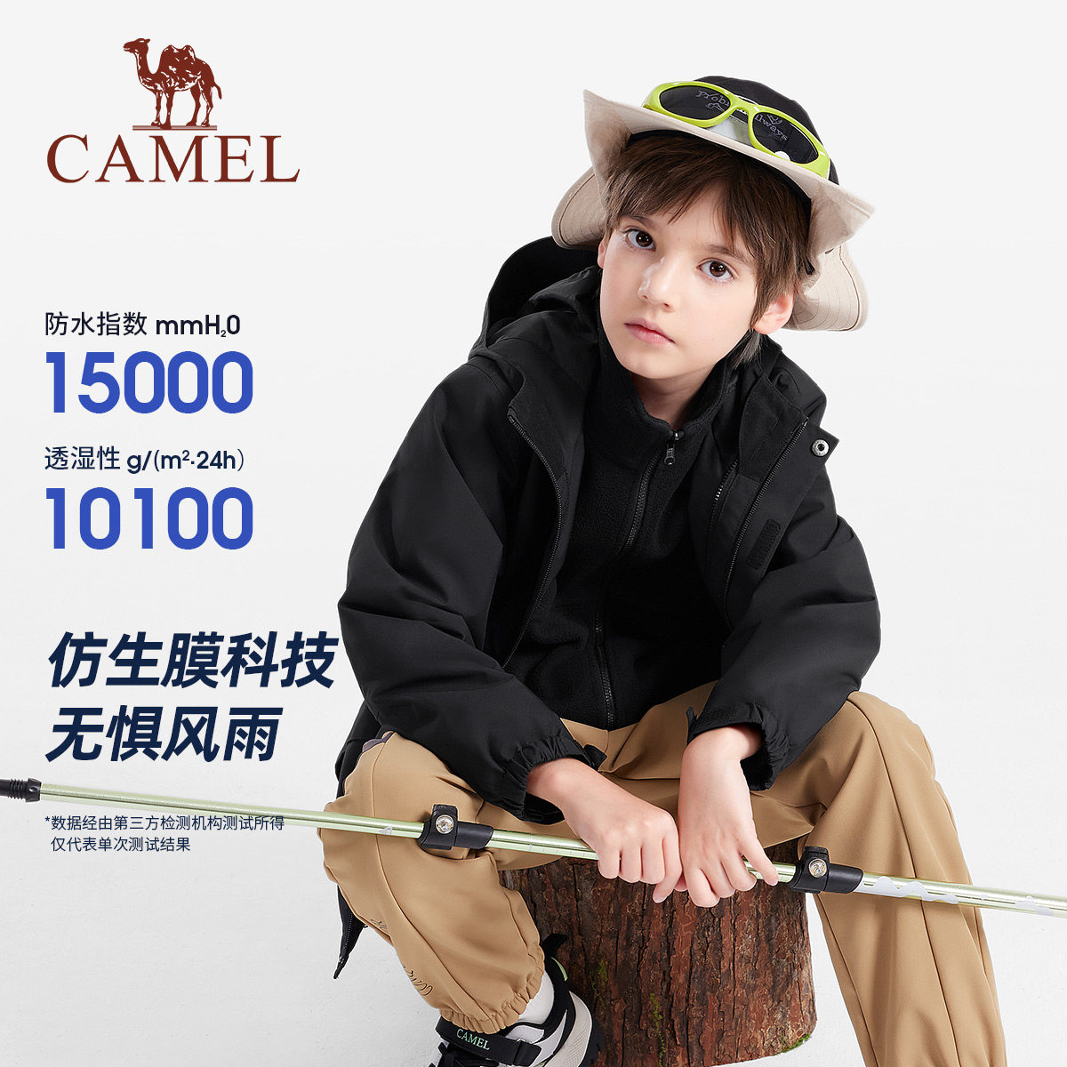 骆驼儿童冲锋衣三合一可拆卸厚户外连帽外套防风防水男女童滑雪服