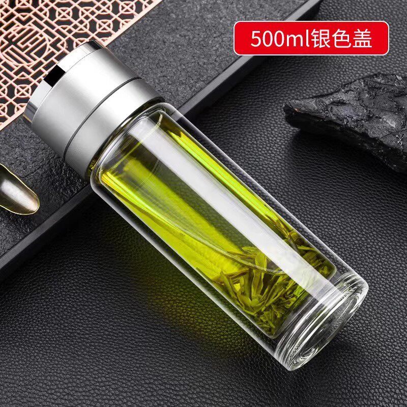 玻璃杯一键按压开盖茶水分离便携男士车载商务杯防爆隔热双层水杯