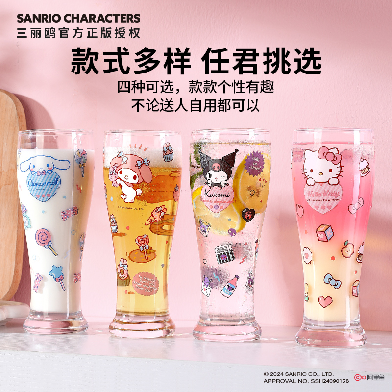 三丽鸥啤酒杯高颜值hellokitty杯子可爱家用女生果汁杯饮料玻璃杯