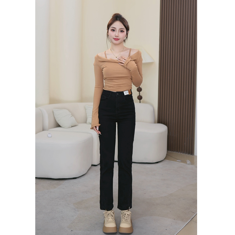 九分烟管牛仔裤女春秋高腰显瘦修身弹力小个子八分窄版法棍直筒裤