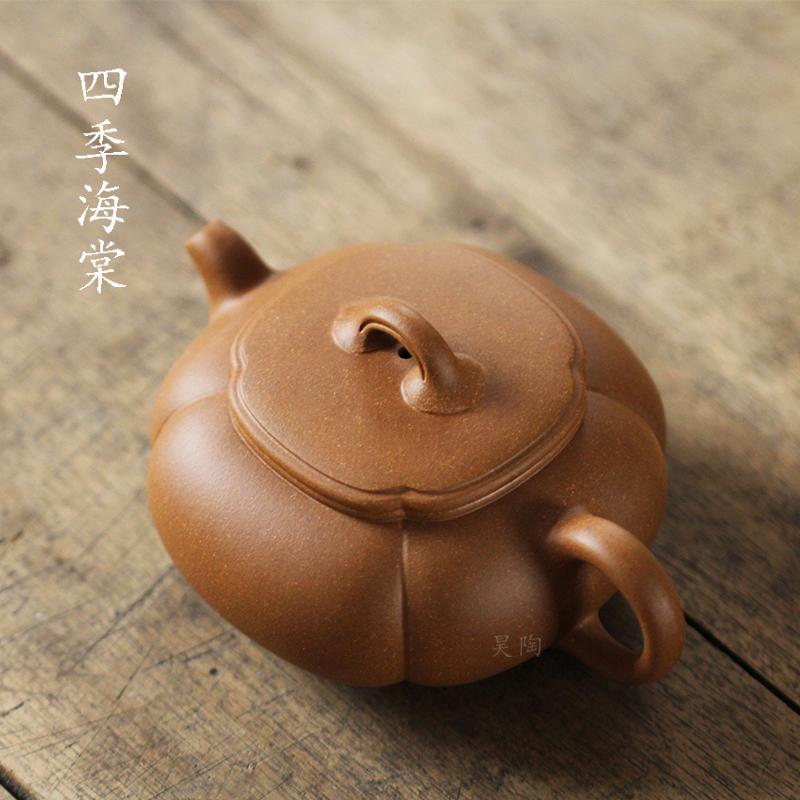 昊陶 老段泥四季海棠 四方筋囊筋纹器 宜兴原矿传统手工紫砂壶