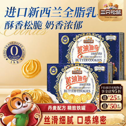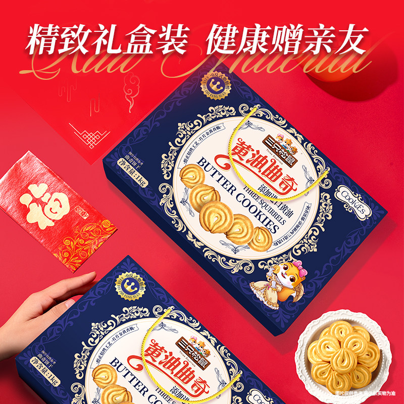 三只松鼠黄油曲奇1000g饼干办公室糕点零食礼包礼盒下午茶送礼