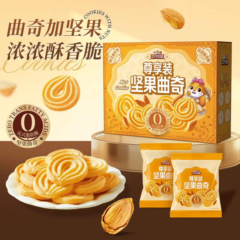 三只松鼠黄油曲奇600g饼干办公室糕点零食礼包礼盒下午茶送礼休闲