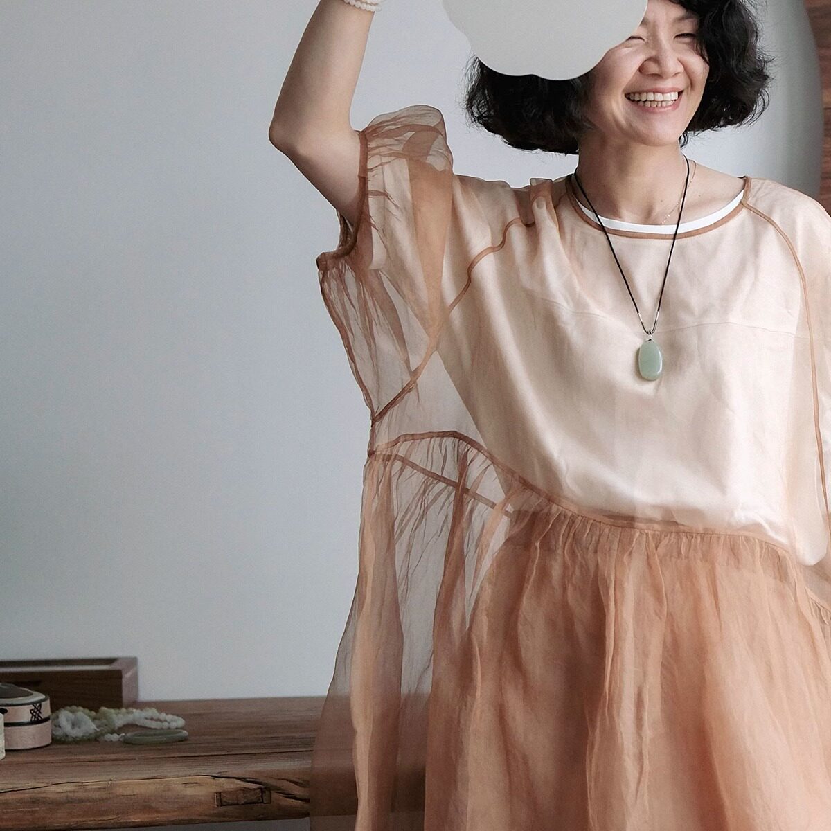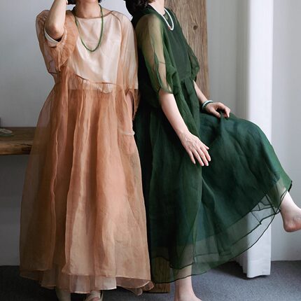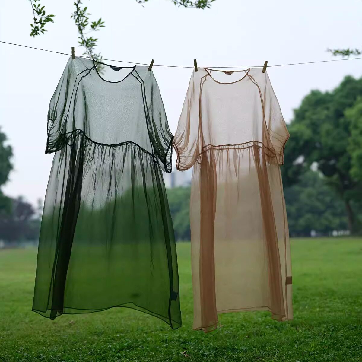 远家植物染欧根纱罩裙LF3986