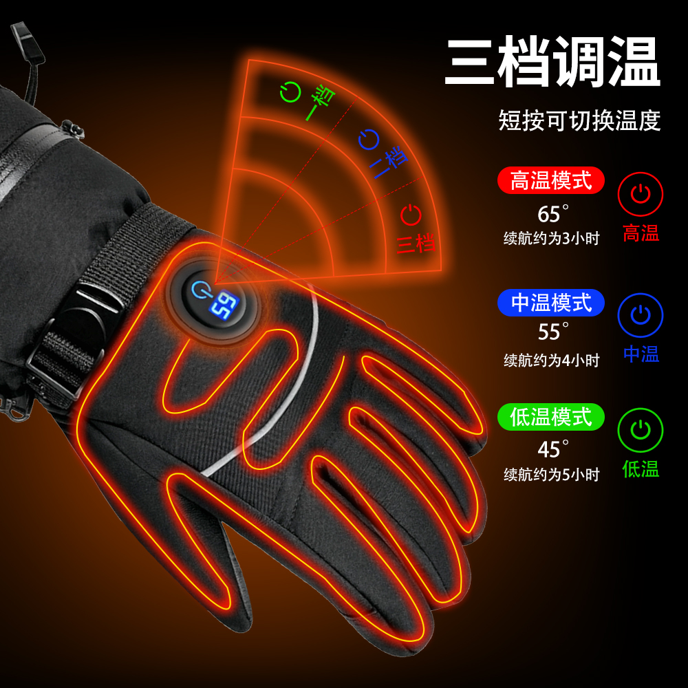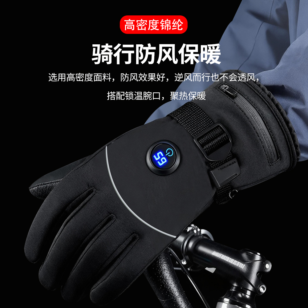 冬季加热手套锂电池双面发热骑行必备防水防寒防风充电加热男士款