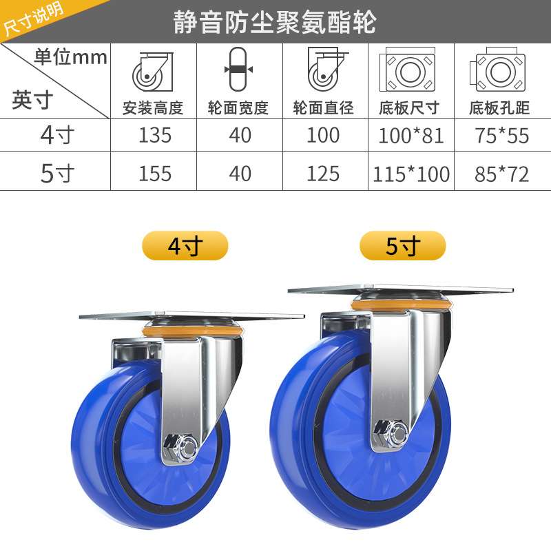 米想现货静音防尘单蓝聚氨酯轮耐磨室内手推车板车轮万向定向轮子
