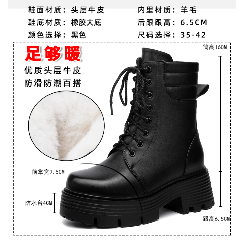 冬季马丁靴女2024新款真皮羊毛保暖棉靴粗跟短靴皮毛一体雪地靴子