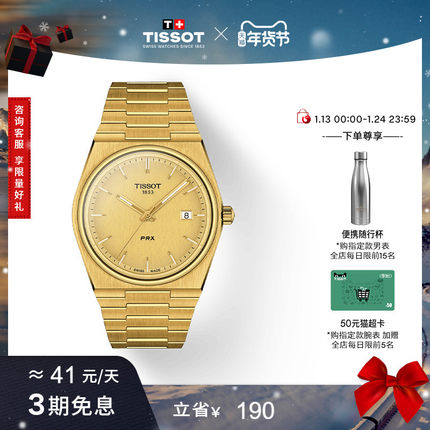 【新年礼物】Tissot天梭官方PRX超级玩家系列金色石英手表