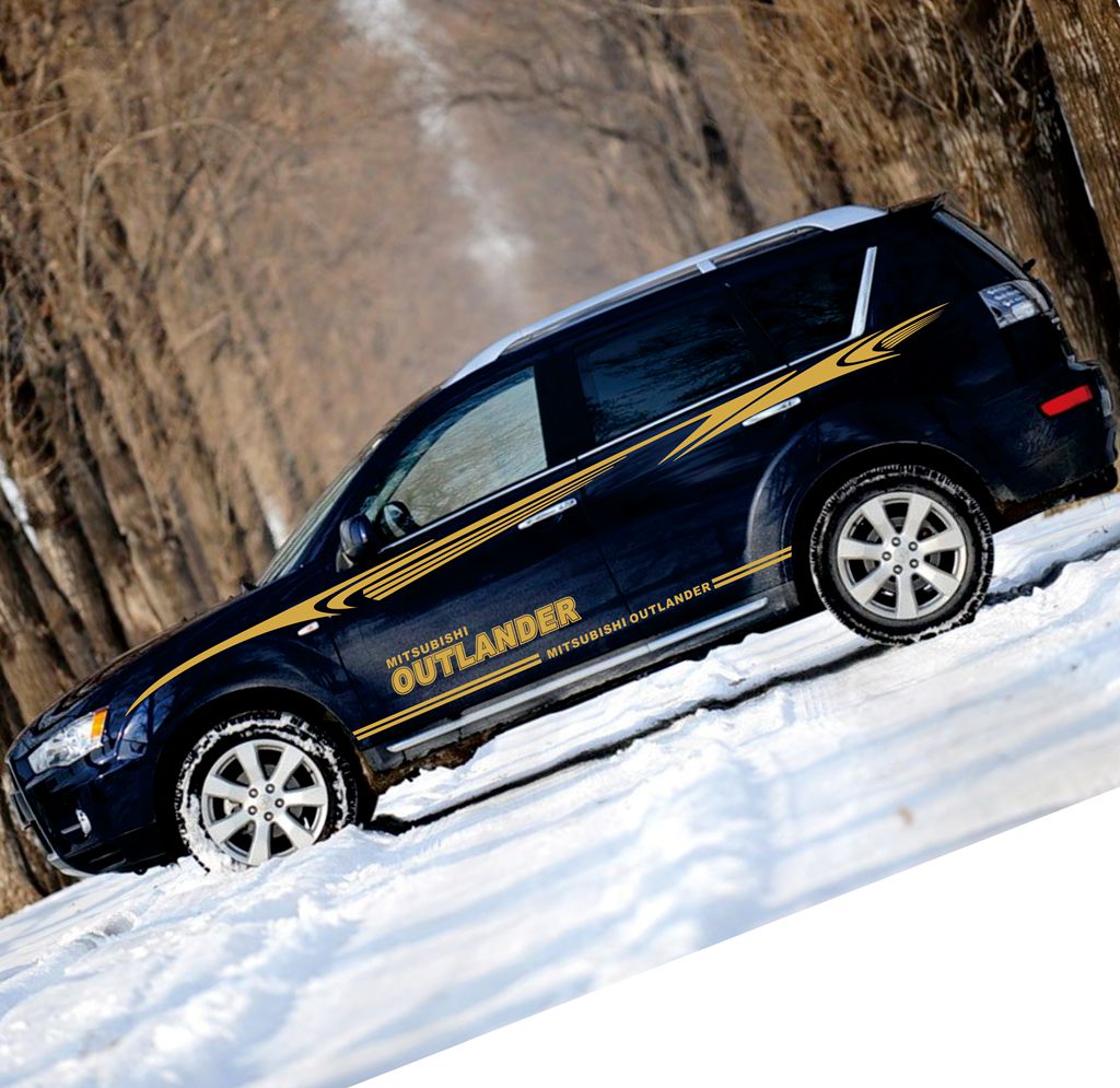 图创新款三菱欧蓝德 车贴拉花 车身腰线贴纸 欧蓝德改装彩条 侧裙