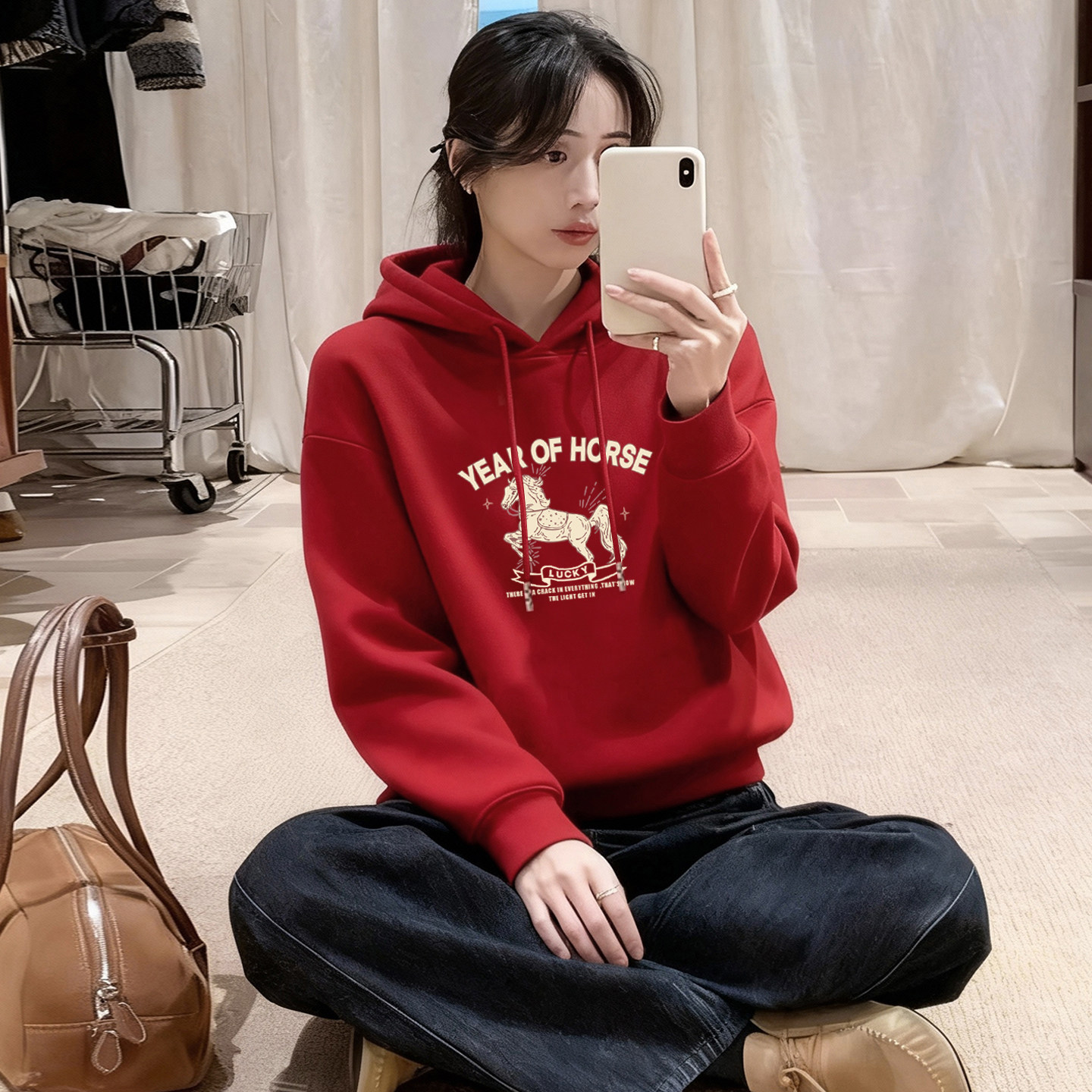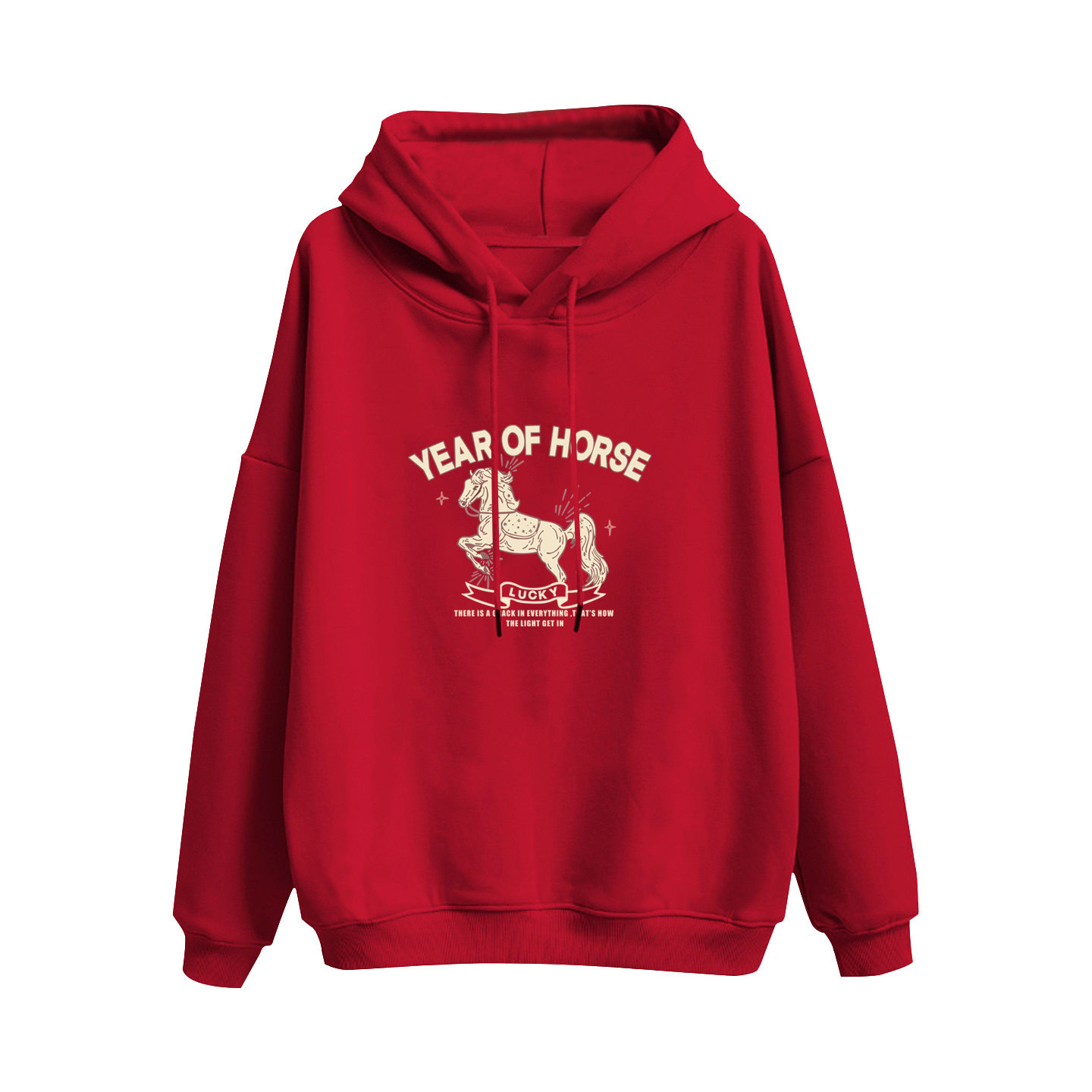 通勤风本命年骏马印花连帽卫衣女