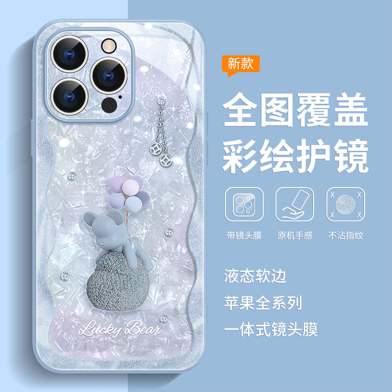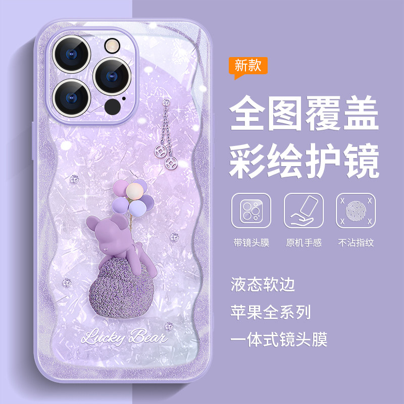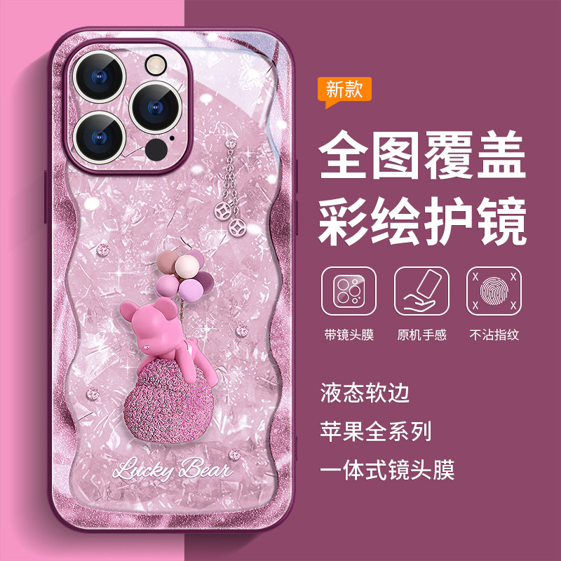 潮牌暴力熊适用苹果17手机壳新款iPhone16promax高端奢华14保护套13彩绘护镜12情侣时尚15液态玻璃plus女11