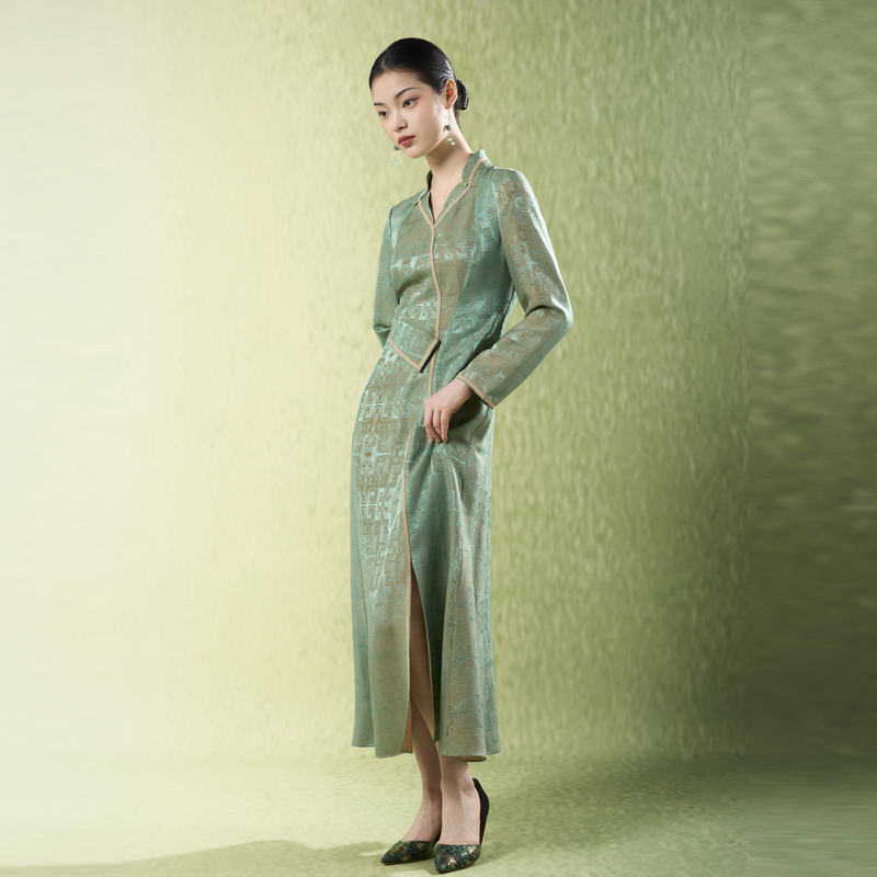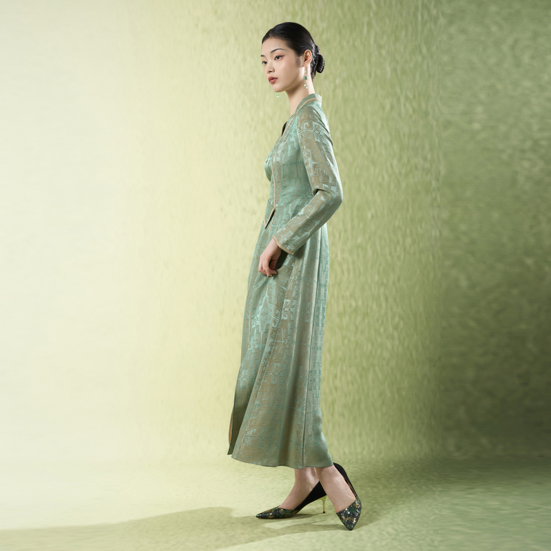 吉祥衣家新中式国风新款桑蚕丝高定女装长裙气质长袖连衣裙春秋款
