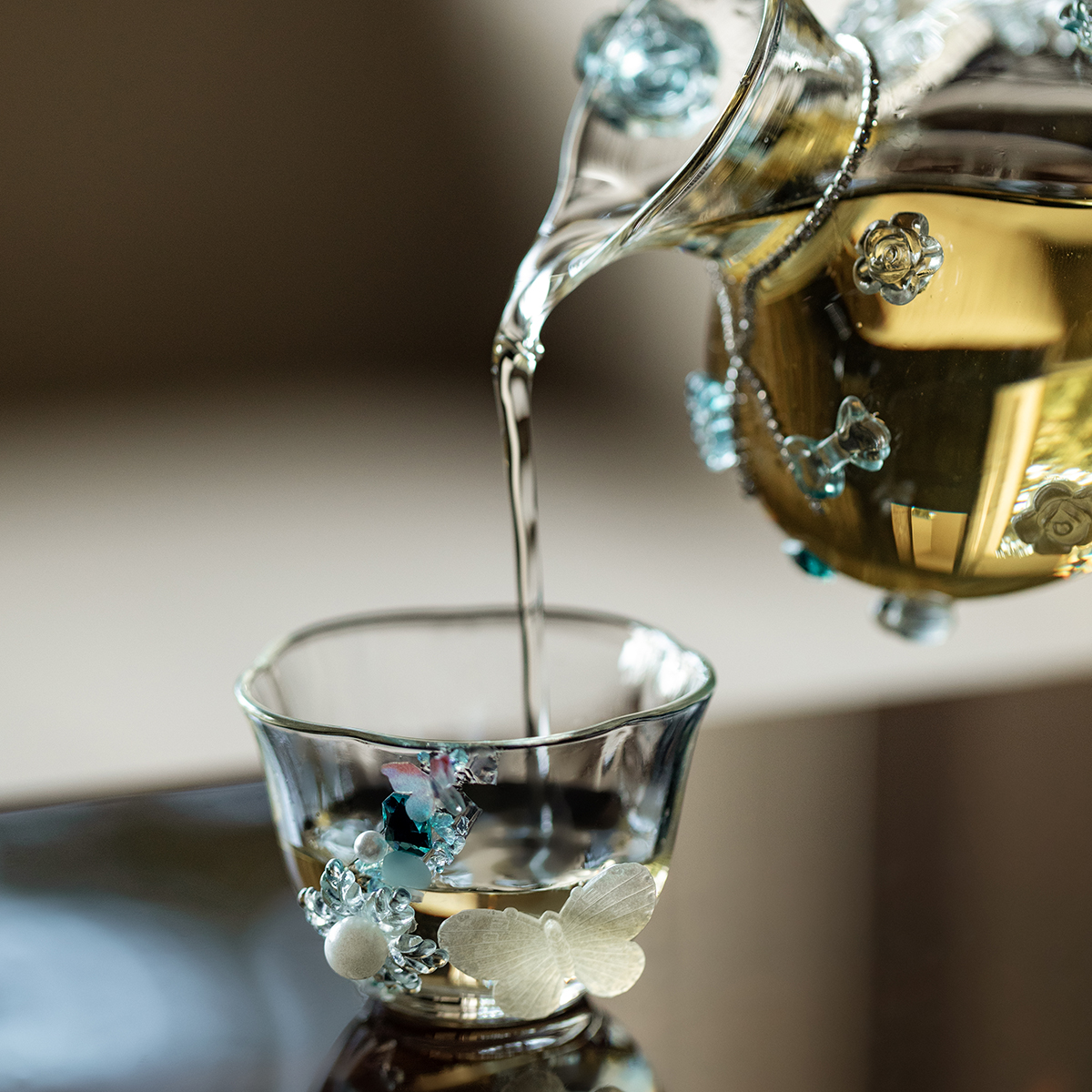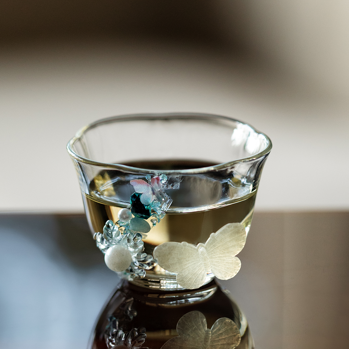 植述 diy手工蝴蝶玻璃茶杯精致高硼硅玻璃透明仙女主人杯女士单杯
