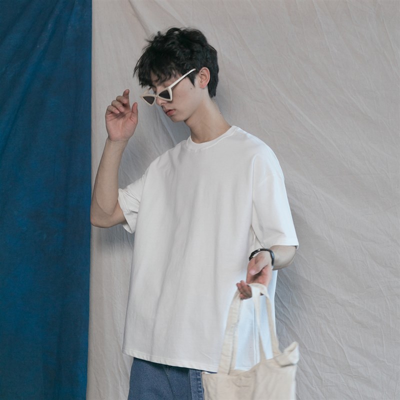 韩版纯色基础款百搭圆领纯棉T恤衫潮人男女宽松BF简约打底短袖tee