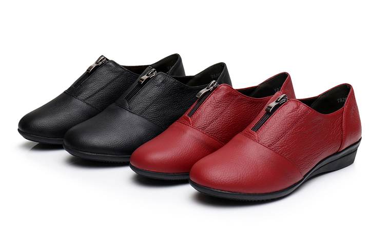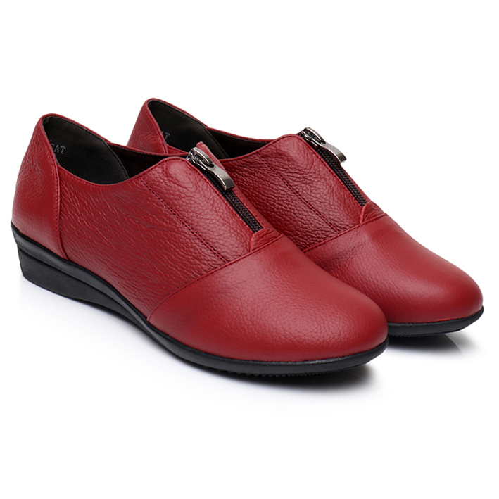 上海花牌真皮女鞋平底鞋妈妈鞋春秋款舒适深口中年坡跟一脚蹬单鞋