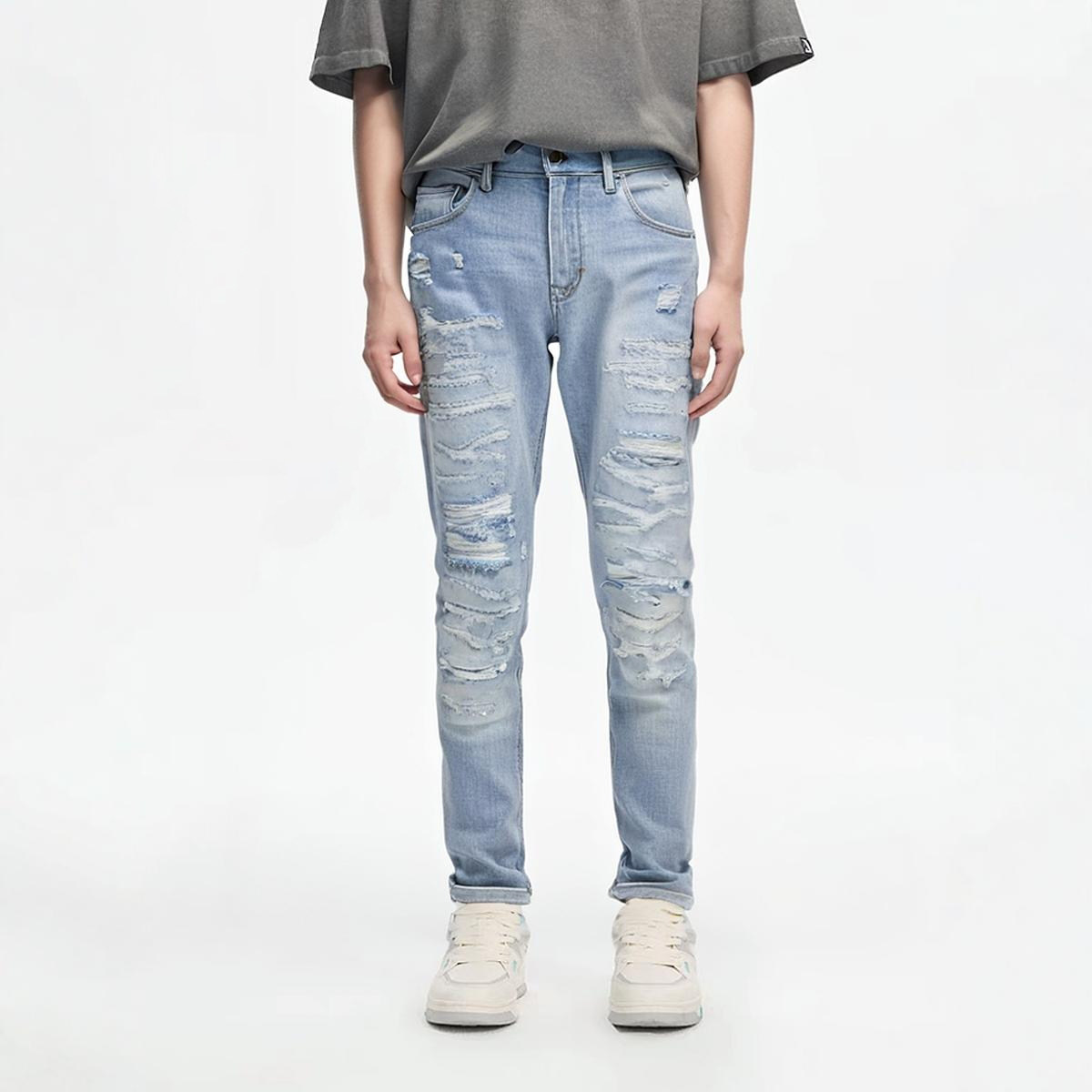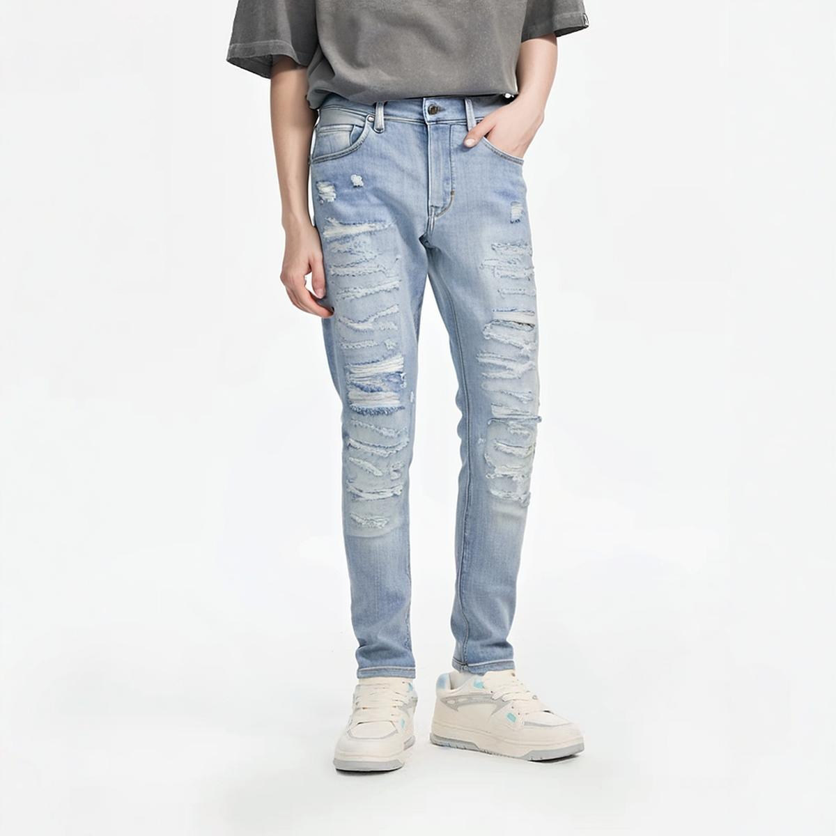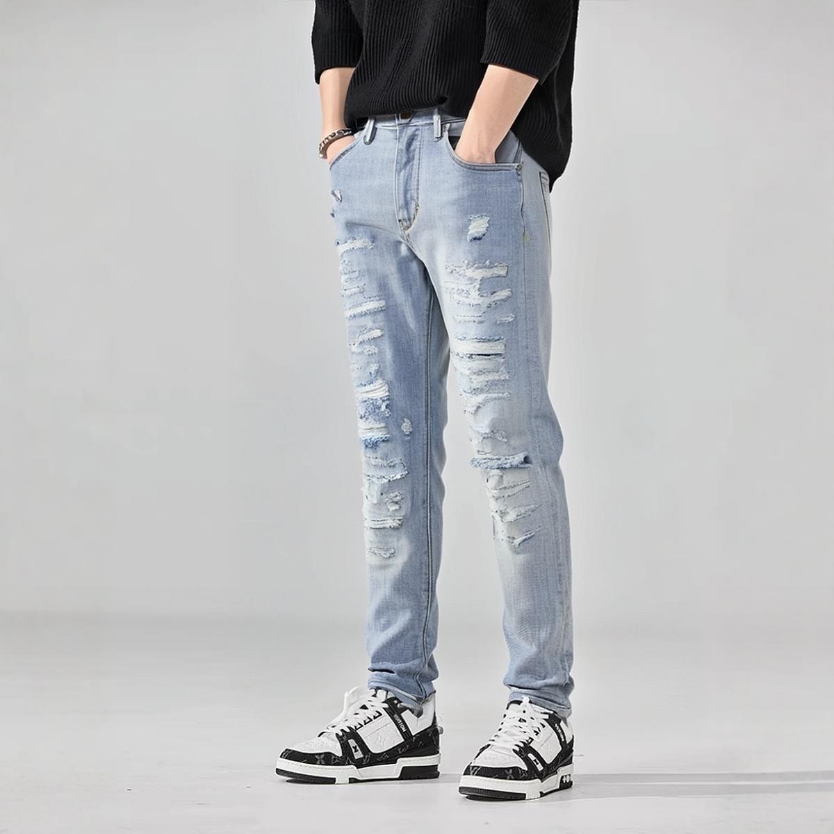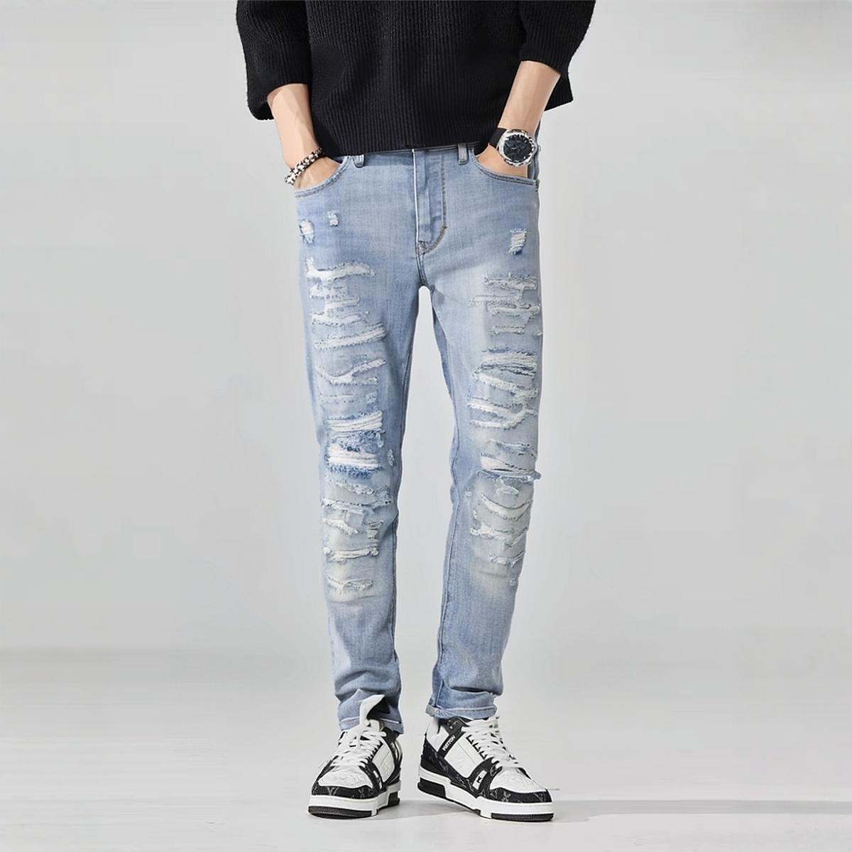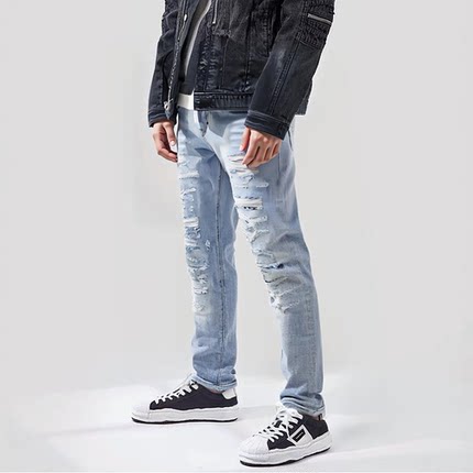 新款男牛仔裤able jeans男修身小脚裤弹力潮流破洞裤青年春秋长裤