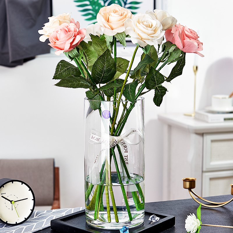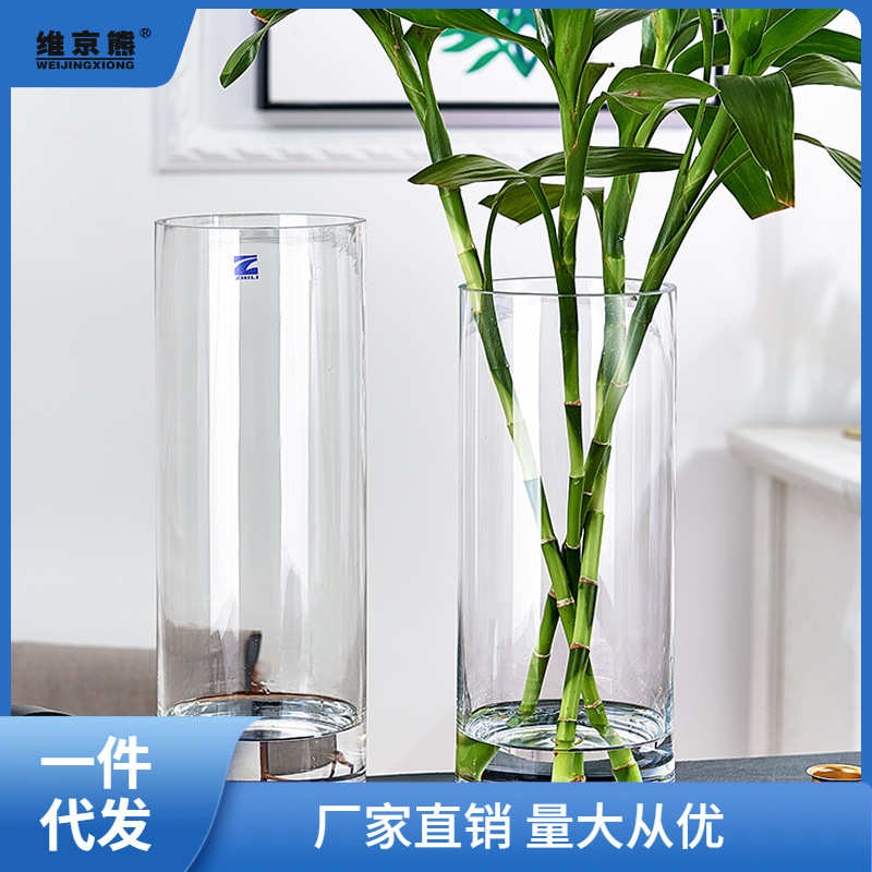 特大号落地花瓶玻璃透明摆件水养富贵竹水竹玫瑰百合插花客厅链衡