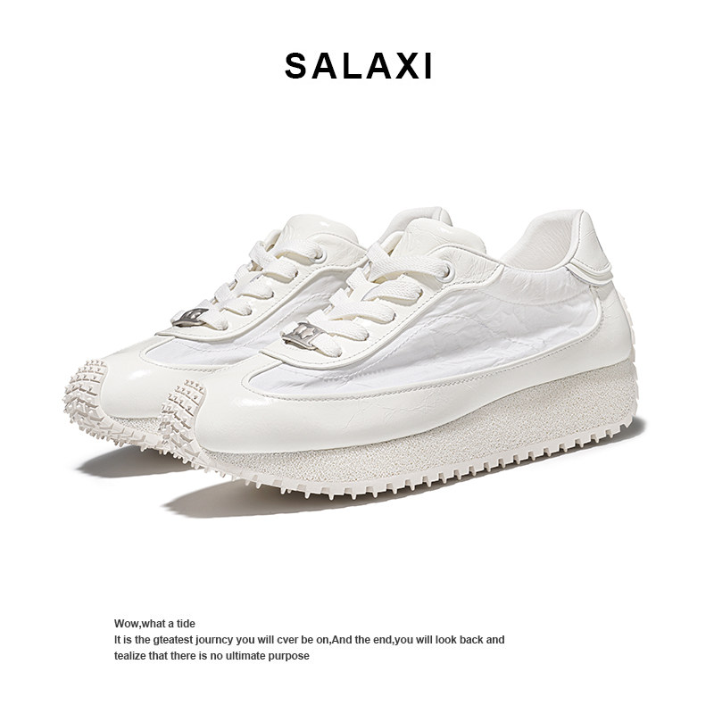 Salaxi/莎莱茜2025透气增高德训小白鞋男女款百搭厚底运动休闲鞋