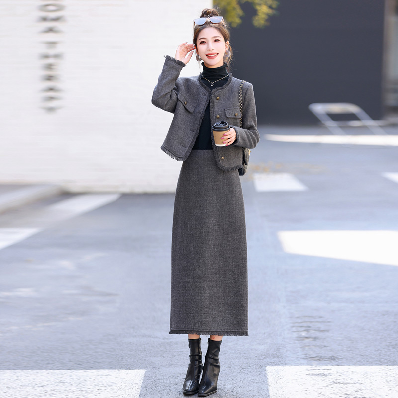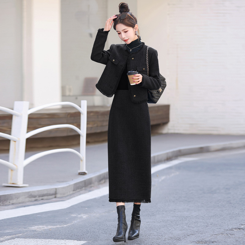 小香风连衣裙搭配一整套装女秋冬季新款漂亮洋气高端半身裙两件套