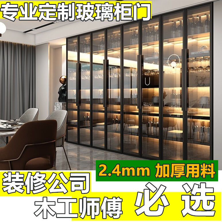 极简玻璃柜门定制做窄边铝框钛镁合金茶色长虹酒柜衣柜餐边橱柜门