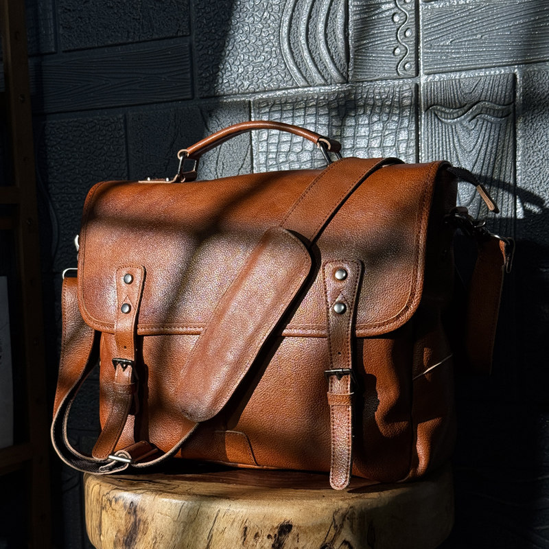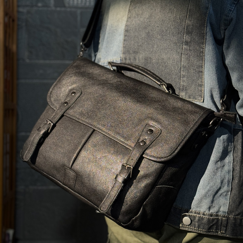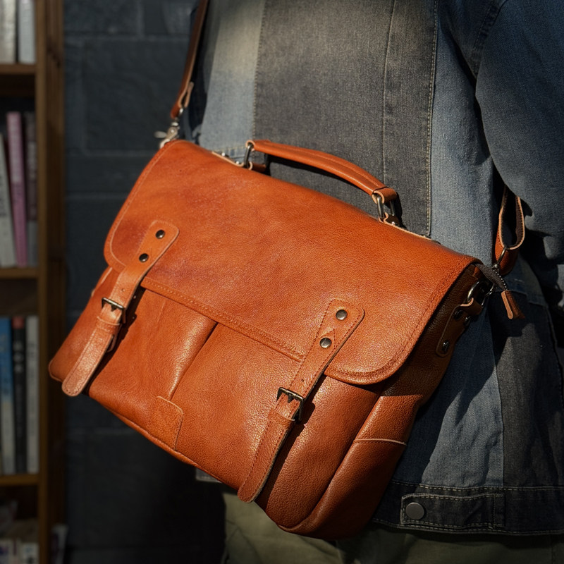 慢时光植鞣牛皮男包真皮男士电脑休闲复古公文包单肩斜挎包邮差包