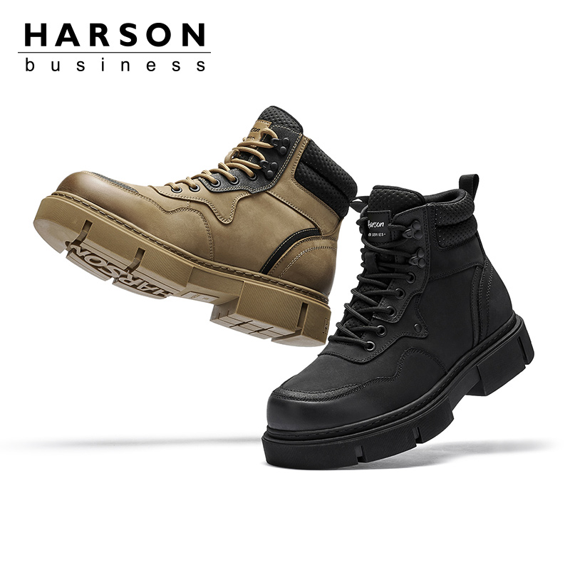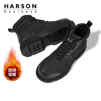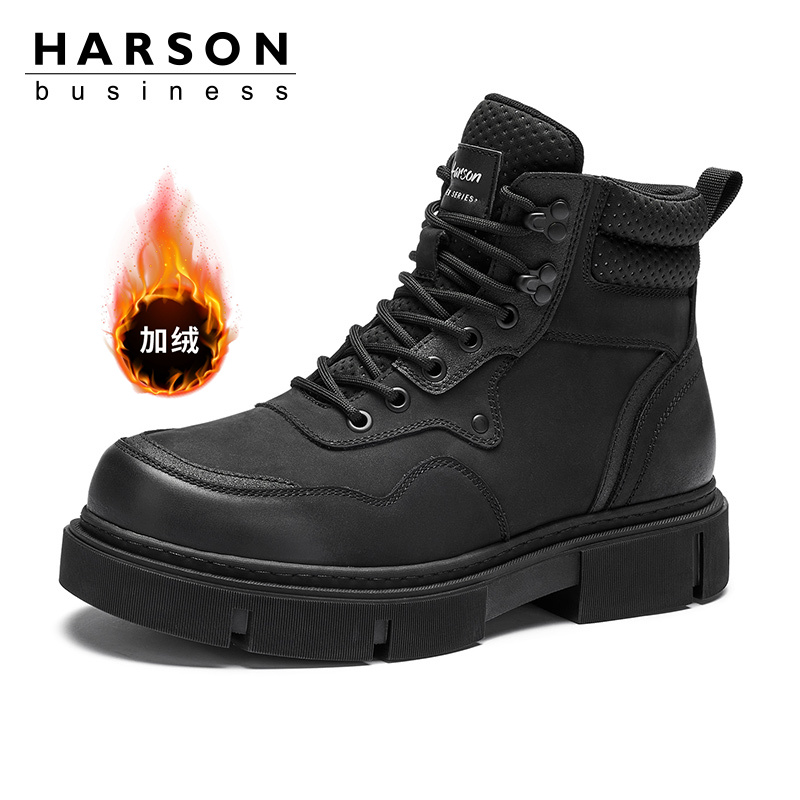 哈森马丁靴男款秋冬加绒棉鞋户外高帮男鞋登山靴男士工装靴雪地靴