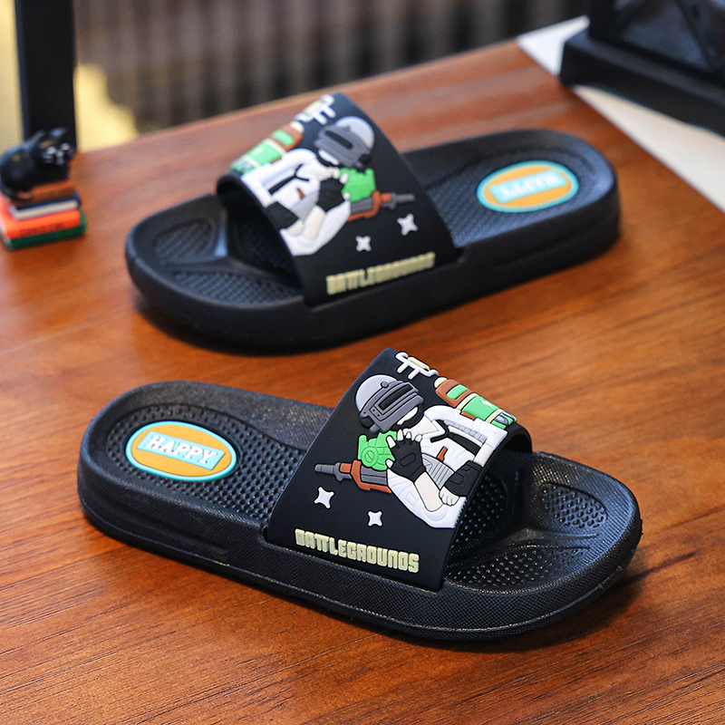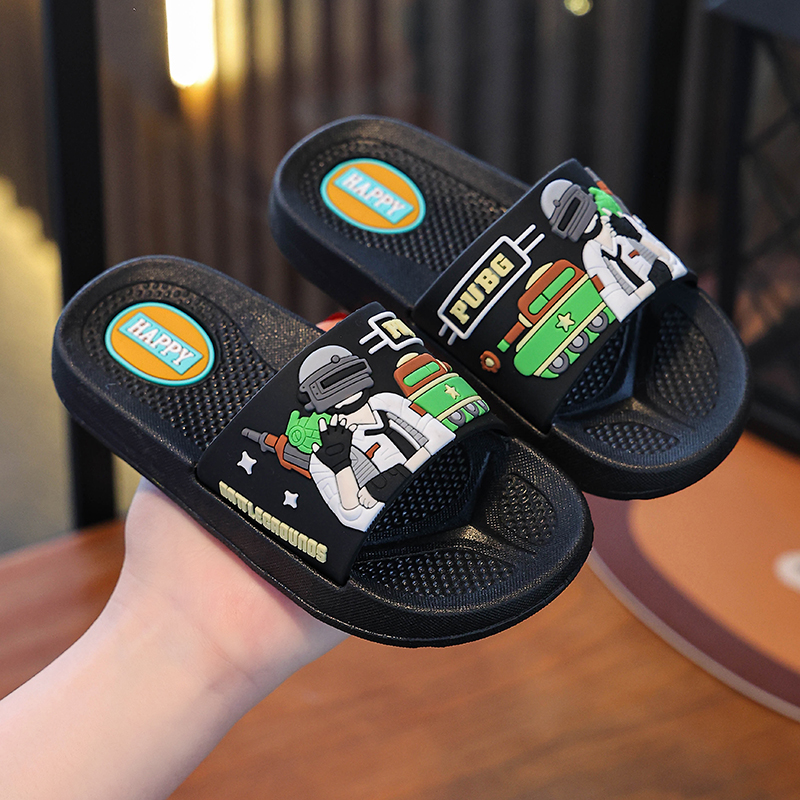 儿童新款夏季男宝宝帅气一字拖卡通吃鸡家居室外防滑男童舒适拖鞋