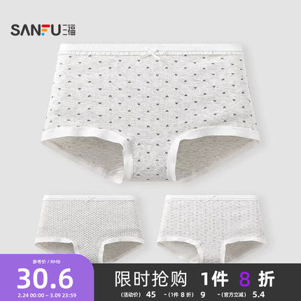 三福【2条装】 内裤女中腰包臀内裤无痕脚口抗菌印花女式平角裤