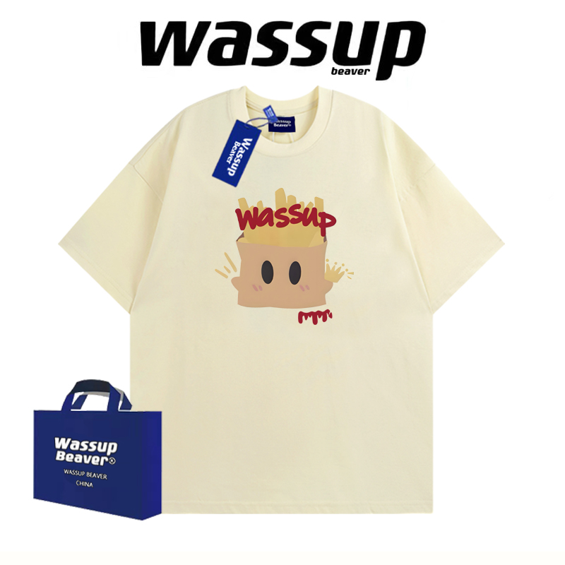 WASSUP BEAVER美式印花纯棉宽松短袖夏季男女新款潮牌上衣半袖T恤