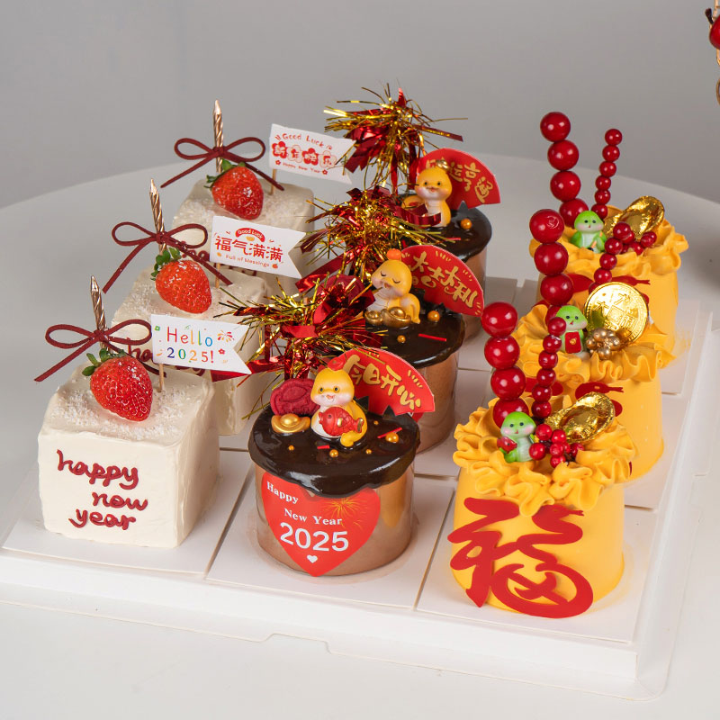 2025蛇年新年蛋糕装饰元宝锦鲤福袋蛇宝宝摆件元旦跨年甜品装扮