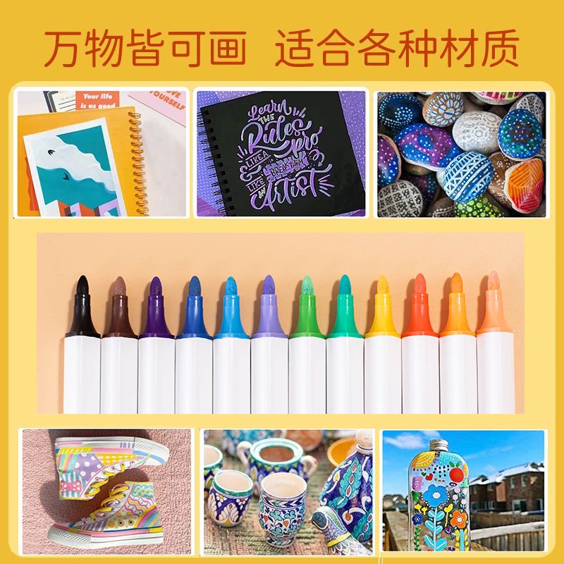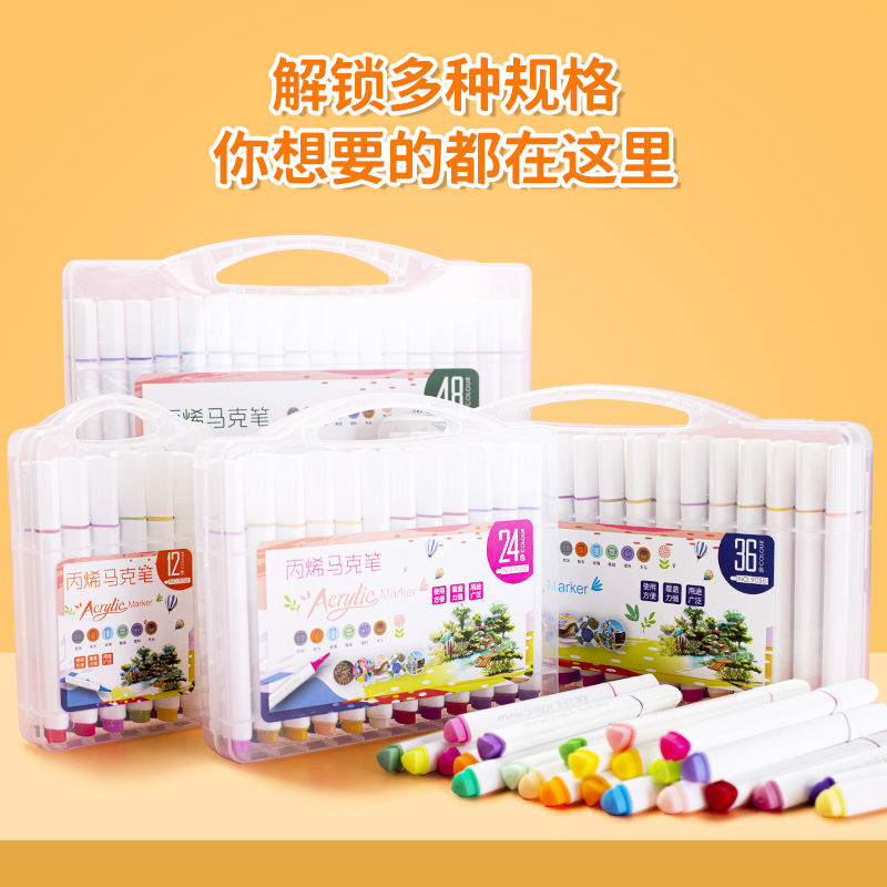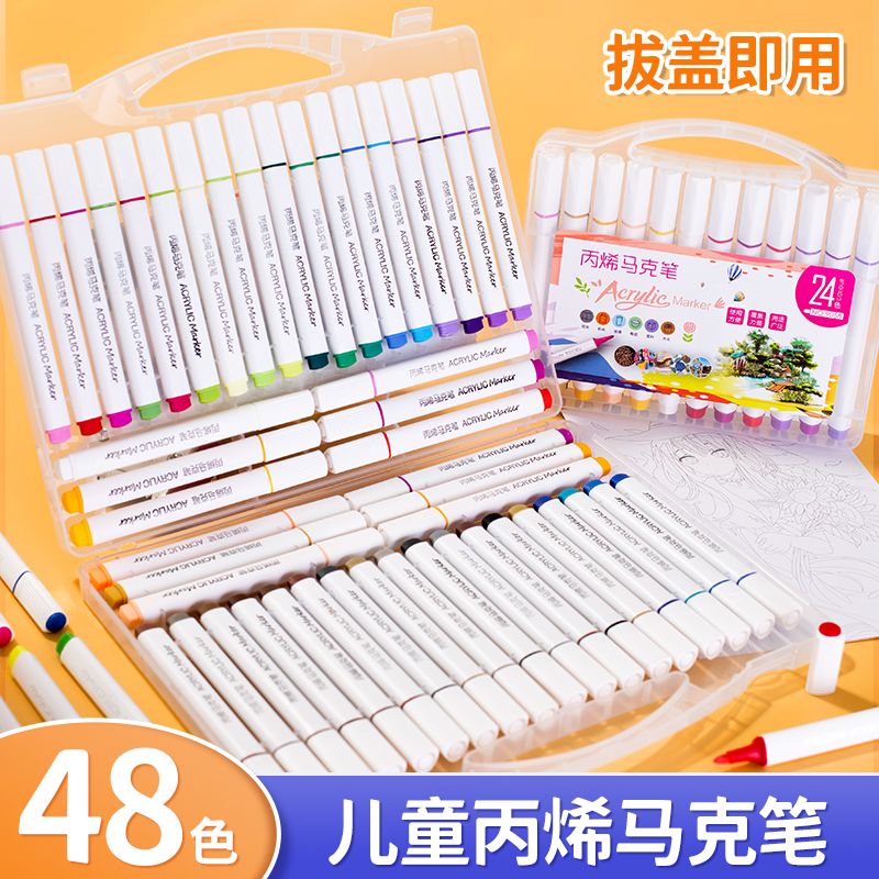 丙烯马克笔小学生专用可叠色儿童双头水彩笔防水不透无毒可洗幼儿园24彩色美术48色36色画画笔烯炳芯比心