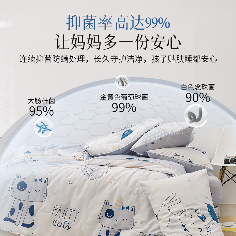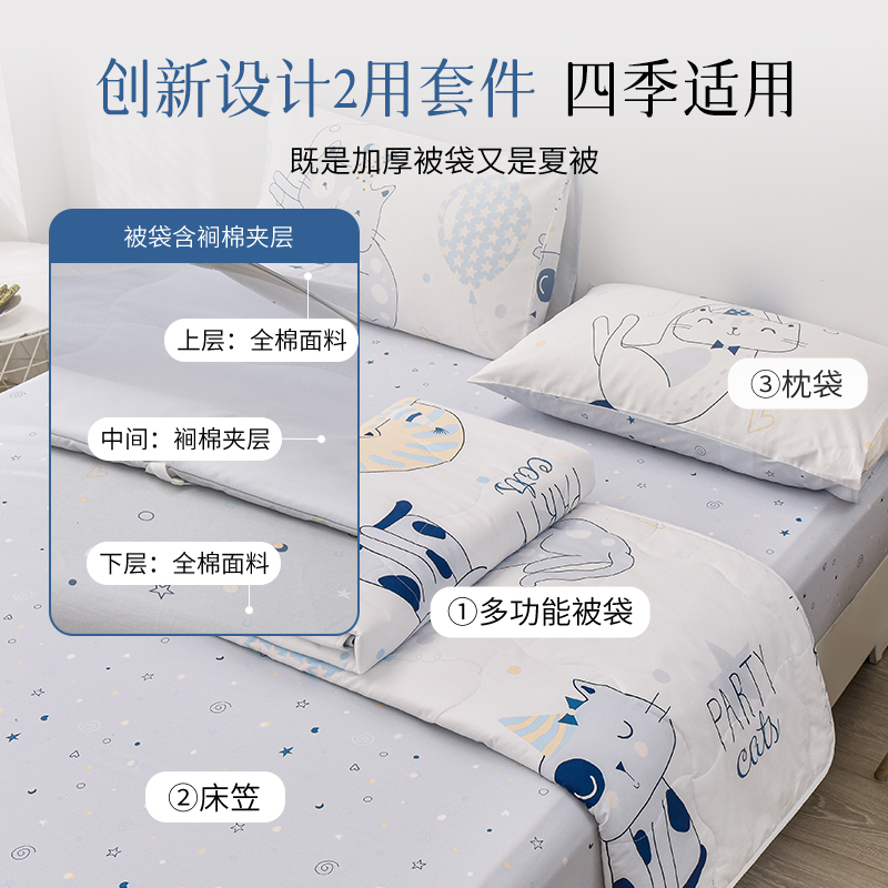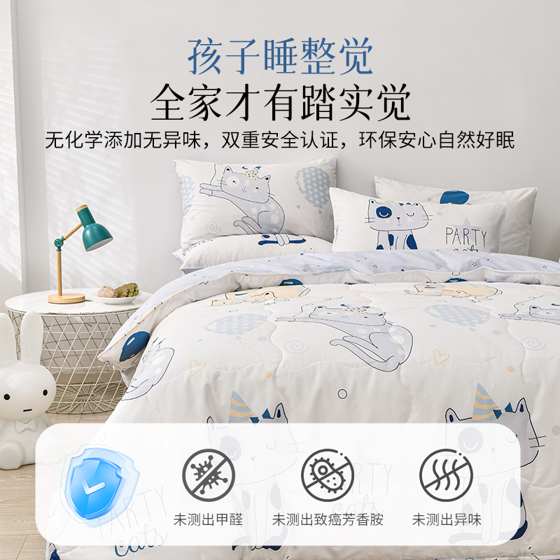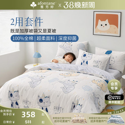 雅芳婷床上四件套纯棉全棉卡通猫咪被套抑菌儿童四件套床笠款床品