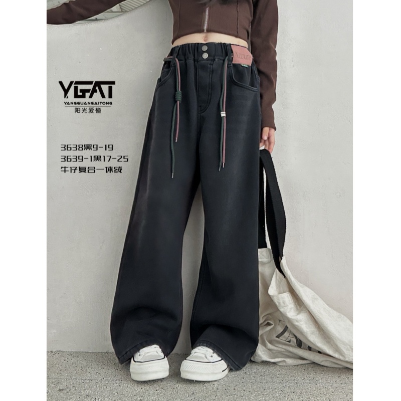 阳光爱橦童装2024冬新款女童韩范直筒裤儿童加绒一体绒牛仔裤3638