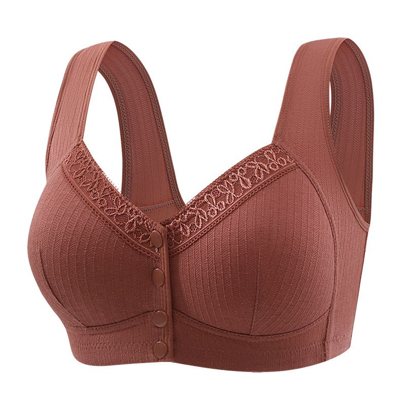 中老年文胸纯棉前扣固定杯收副乳无钢圈妈妈背心式运动内衣女胸罩