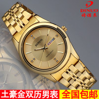 谛诺手表 男士双历土豪金夜光腕表 时尚防水复古石英表 商务男表