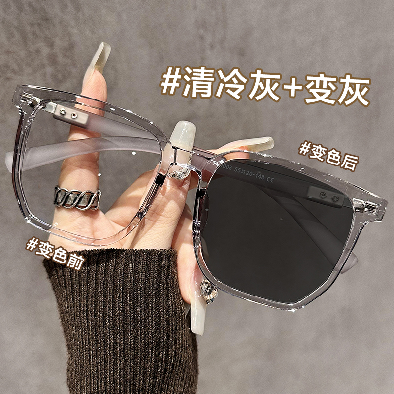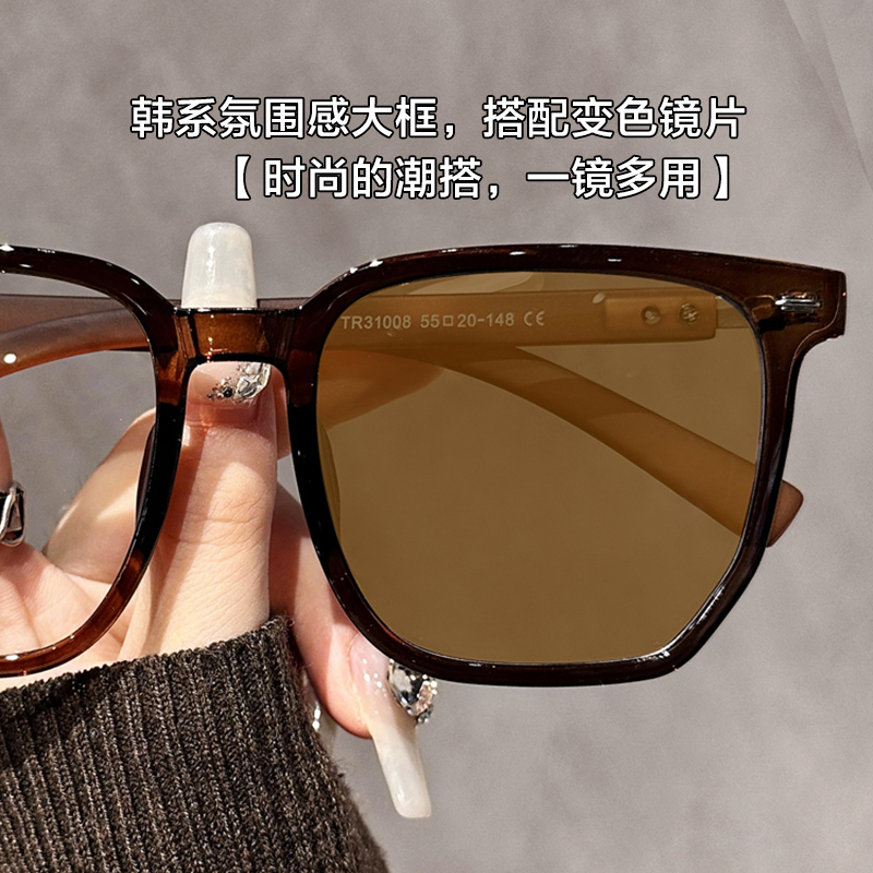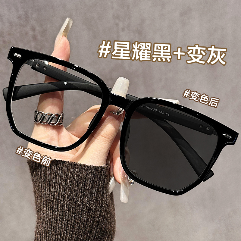 感光变色超轻TR90大框近视眼镜男网上可配度数大脸防蓝光眼睛架女