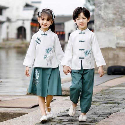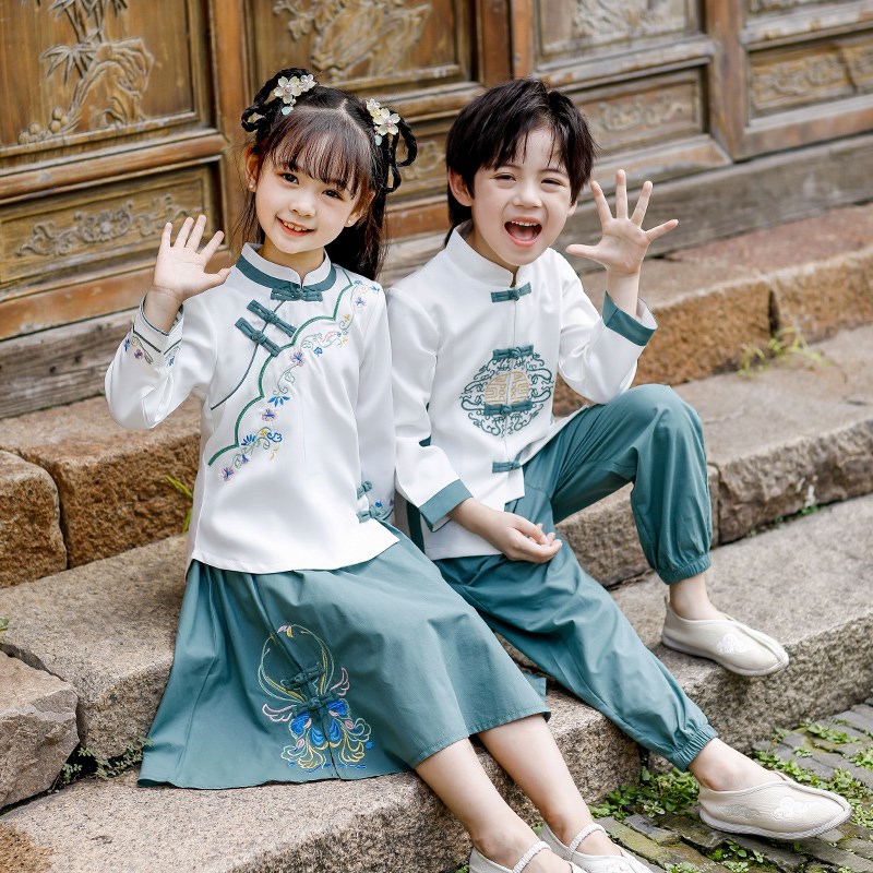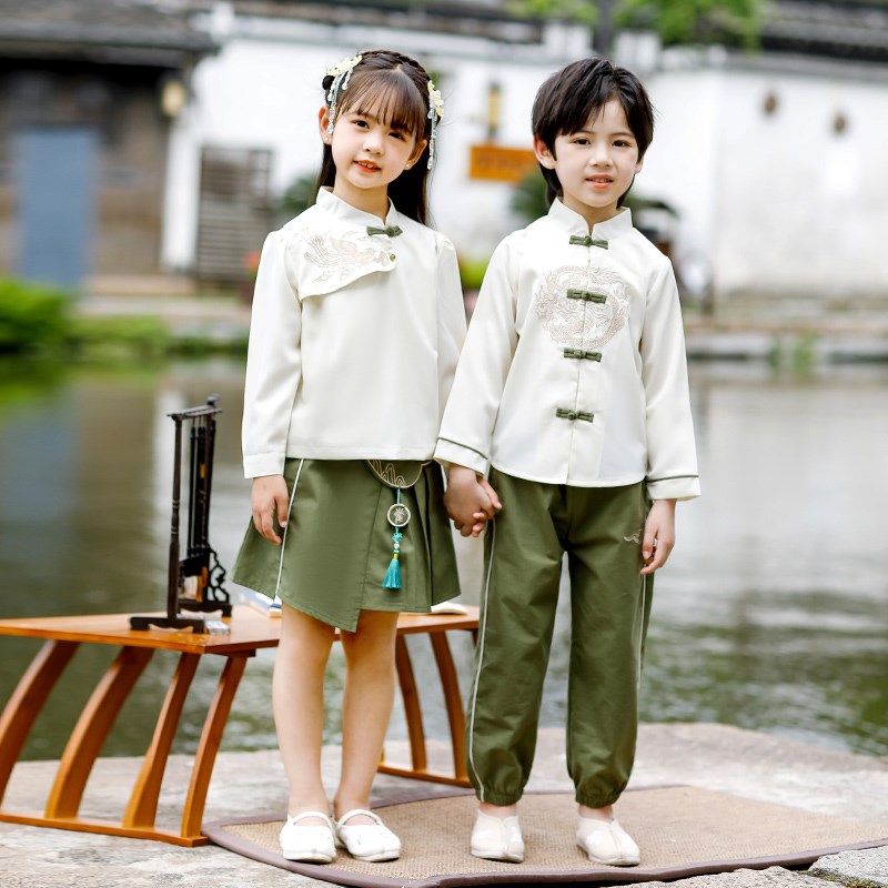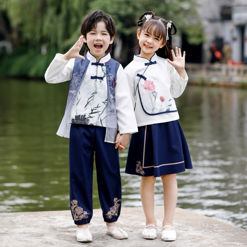 儿童汉服复古套装秋季长袖男童中国风唐装女童学院风裙表演服古装