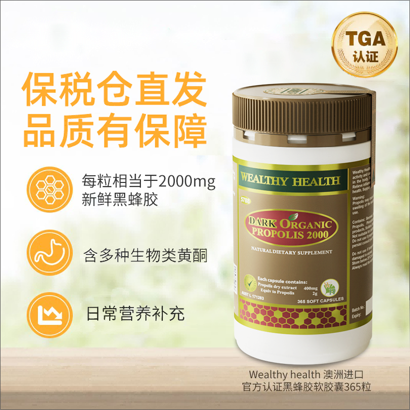 【自营】澳洲进口黑蜂胶软胶囊wealthy health液体原胶365粒原装