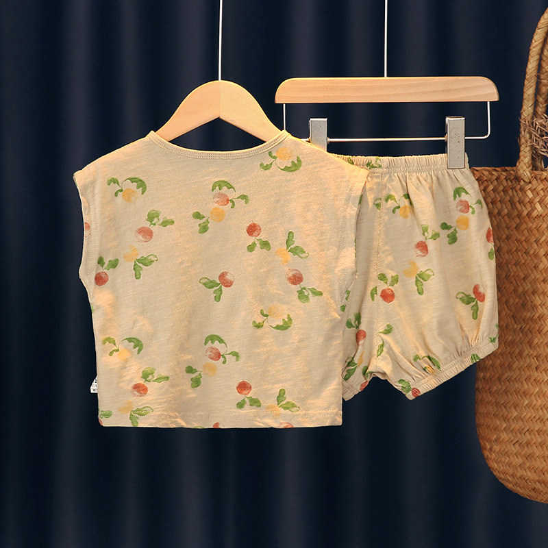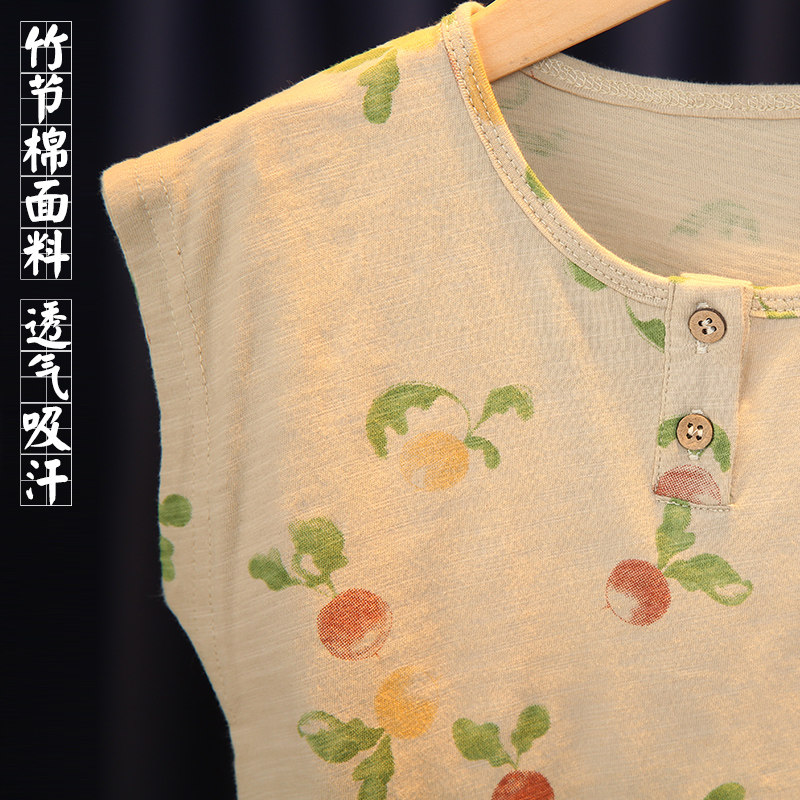 女童夏季套装2025新款宝宝北欧无袖背心婴幼儿竹节棉t恤短裤套装