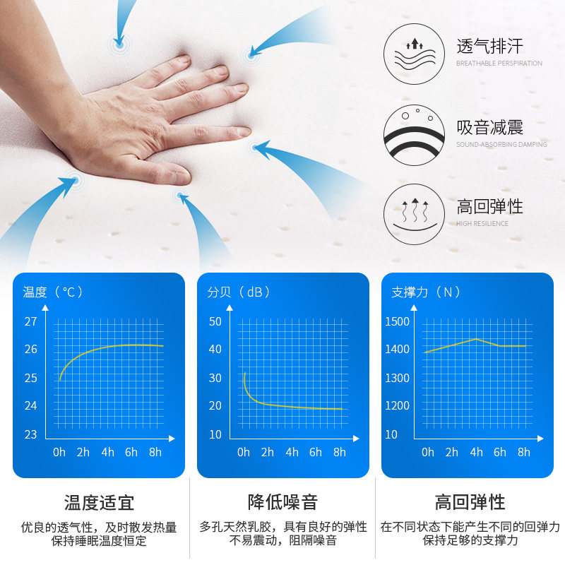 希尔顿酒店专用天然乳胶床垫1.8米1.5米酒店床垫棕榈独立弹簧软硬